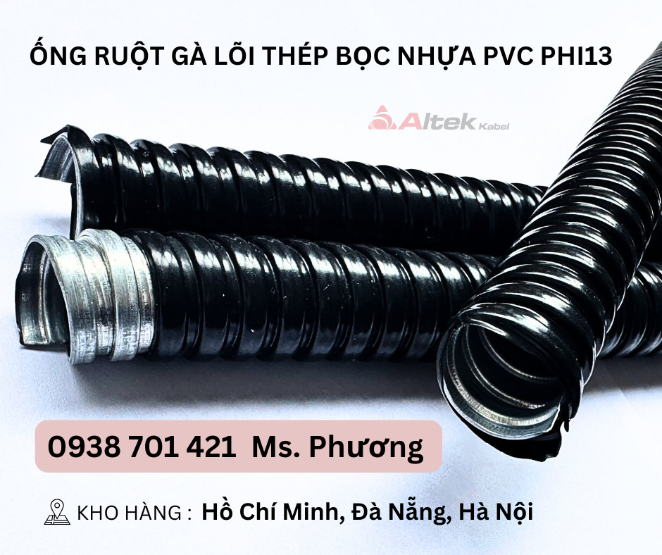 Ống ruột gà lõi thép bọc nhựa PVC Phi13 tại Đà Nẵng, Hà Nội, Hồ Chí Minh