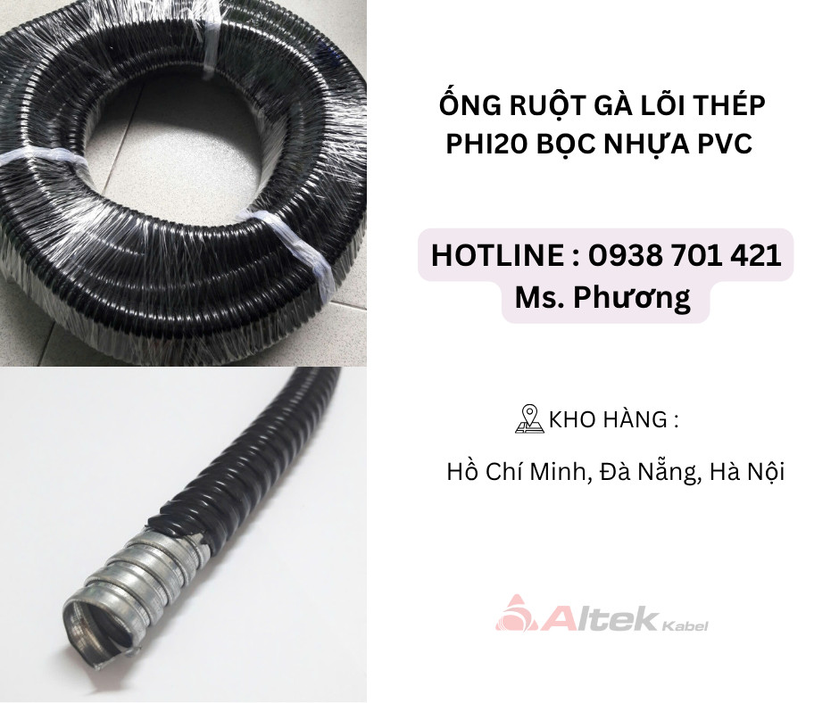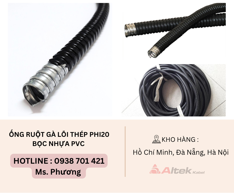Ống ruột gà lõi thép Phi20 bọc nhựa PVC Đà Nẵng, Hà Nội, Hồ Chí Minh