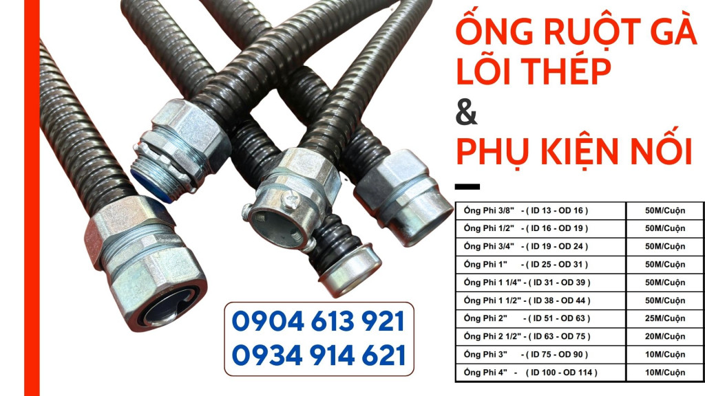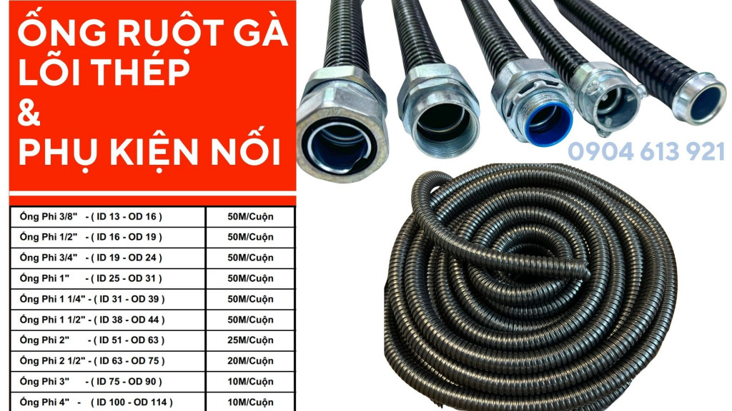 - Ống ruột gà lõi thép bảo vệ dây dẫn tránh tác động từ các va chạm sắc nhọn và sự cắn phá của một số động vật.