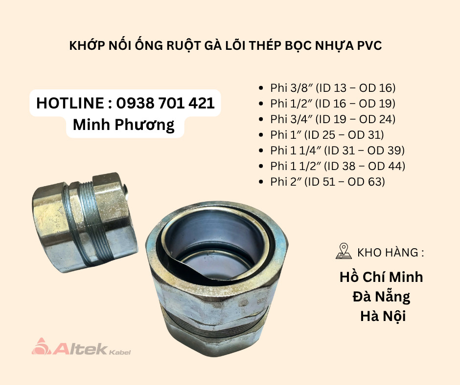 Phụ kiện ống ruột gà lõi thép bọc nhựa PVC Đà Nẵng, Hà Nội, Quảng Bình