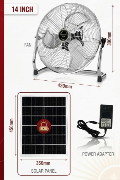Kích thước: Quạt 14 inch, thiết kế chân quỳ thấp, chắc chắn, dễ di chuyển