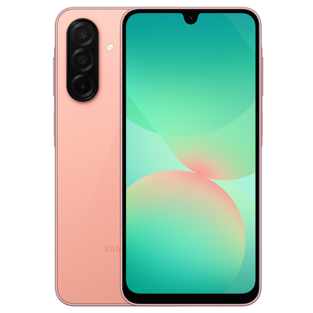 Galaxy A26 sẽ có ba tùy chọn màu sắc: Đen, Xanh và Cam Đào. Thiết bị nhà Samsung có kích thước tổng thể 164 x 77.5 x 7.7 mm, mỏng hơn thế hệ trước (8.3 mm) và trọng lượng 200 gam.