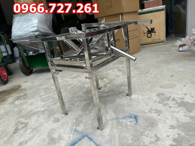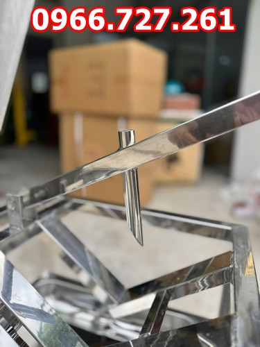 Khung bàn chặt 100% Inox SUS 304 dày dặn chắc chắn, bền đẹp, không bị rỉ sét. Chân có tai khoan sẵn lỗ để bắt vít, nở sắt cố định lên sàn nhà. Dùng cho quán bán kem dừa côn đảo, dừa nước, xe bán rong rất tiện dụng và nhanh chóng, bàn cao 50cm