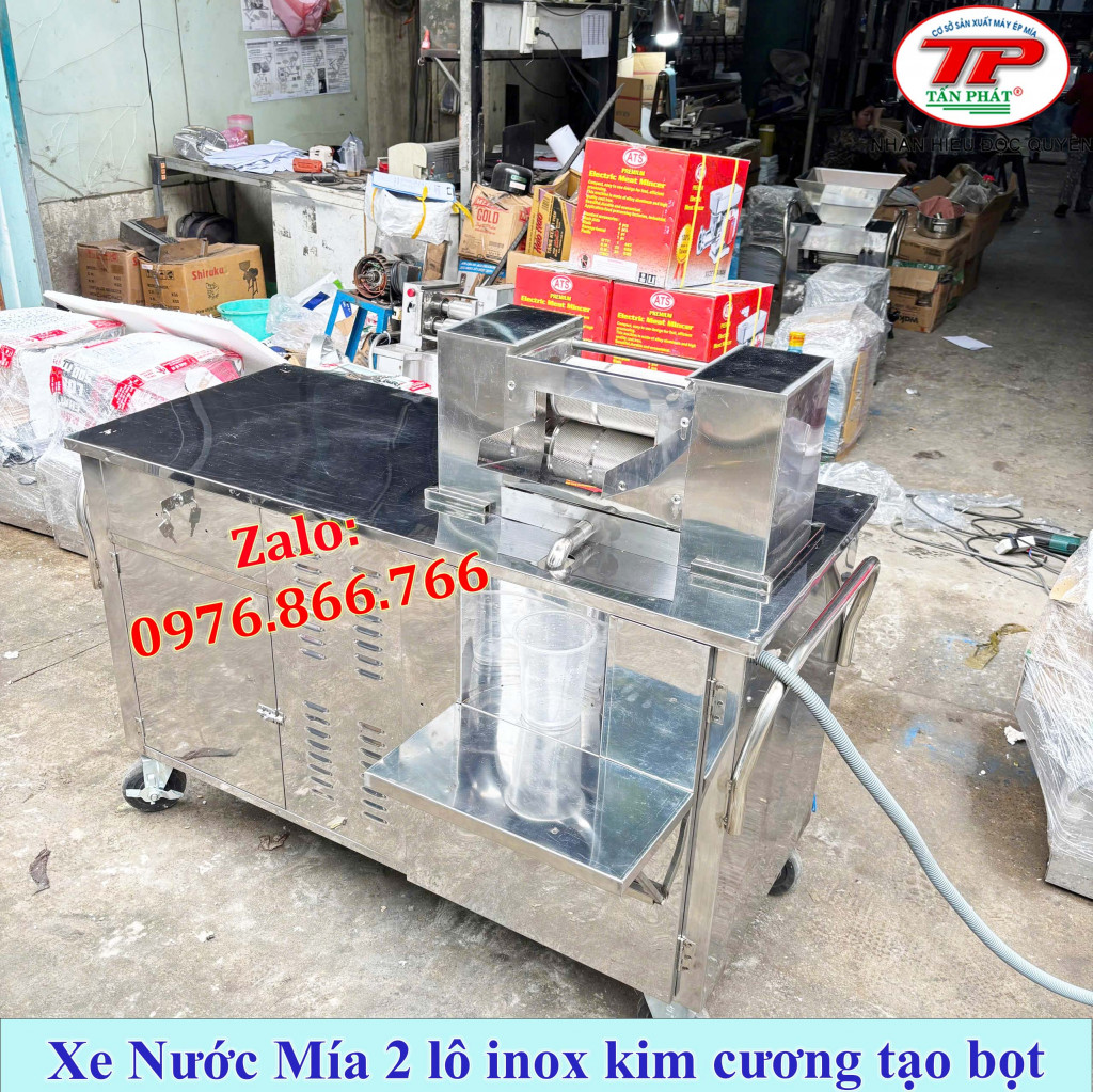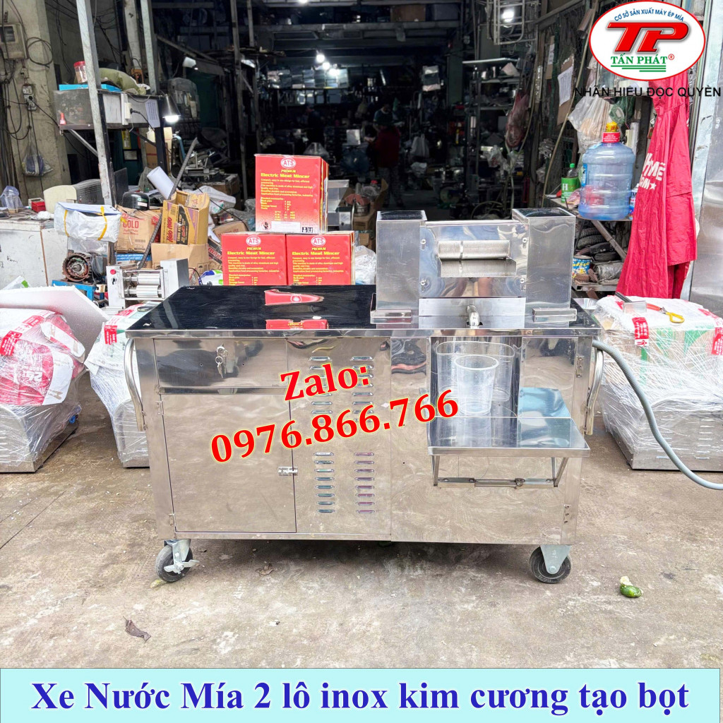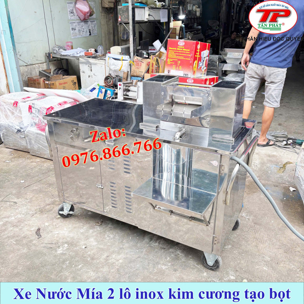 XE NƯỚC MÍA 2 LÔ INOX SIÊU TẠO BỌT - 2 LÔ INOX KIM CƯƠNG TẤN PHÁT