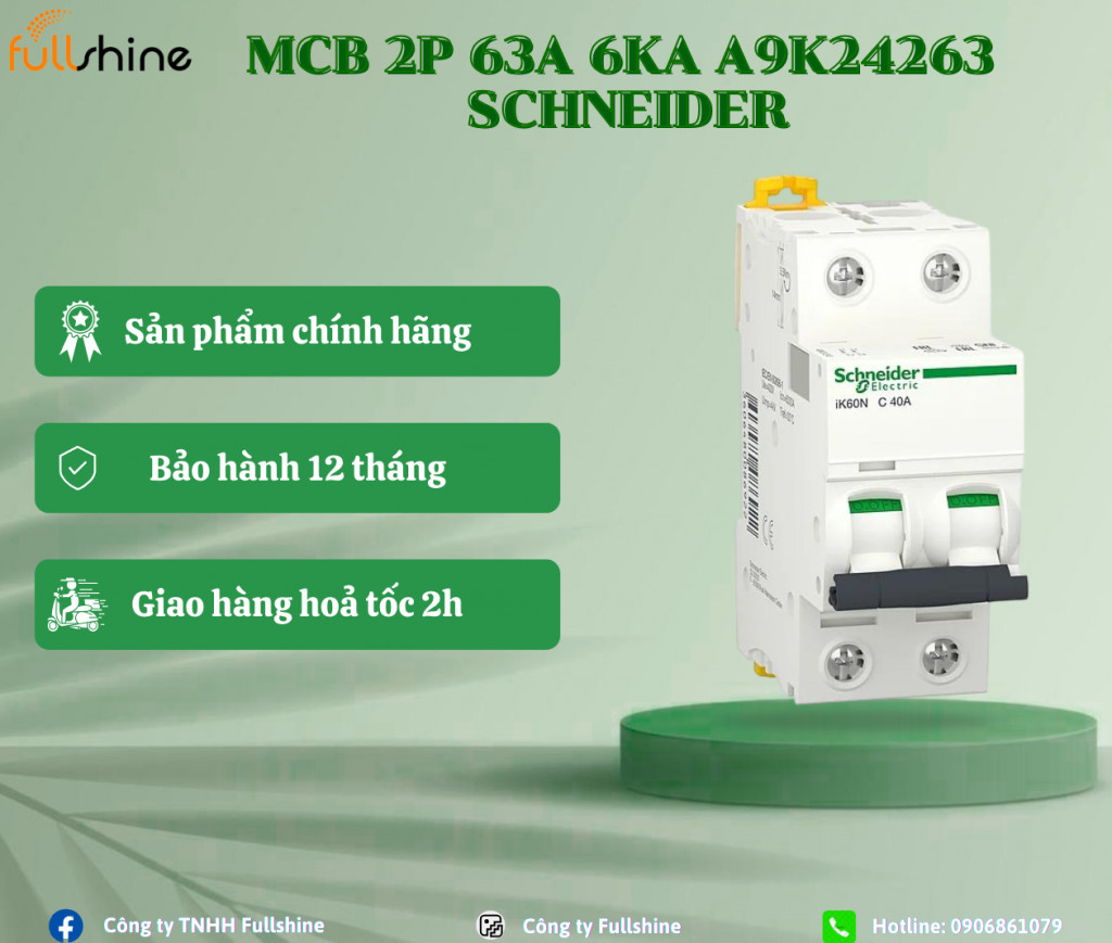 Khám phá ngay Aptomat MCB Schneider A9K24263 – 2P 63A – Dòng cắt 6kA, lựa chọn lý tưởng cho cả dân dụng và công nghiệp!