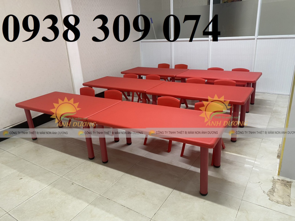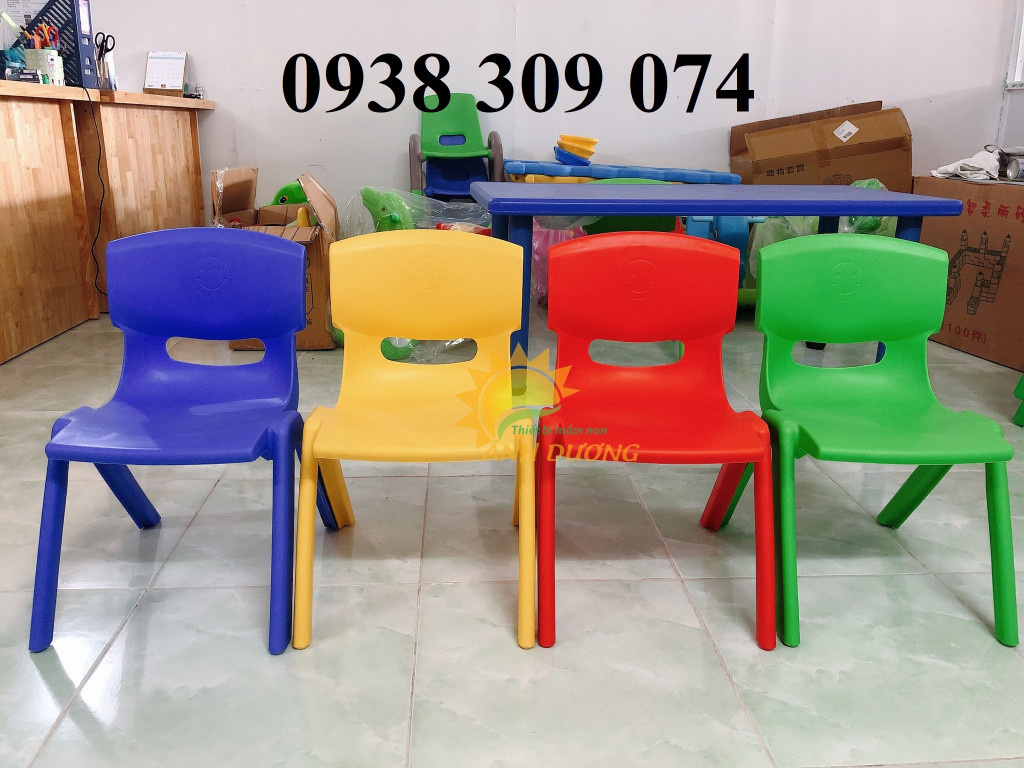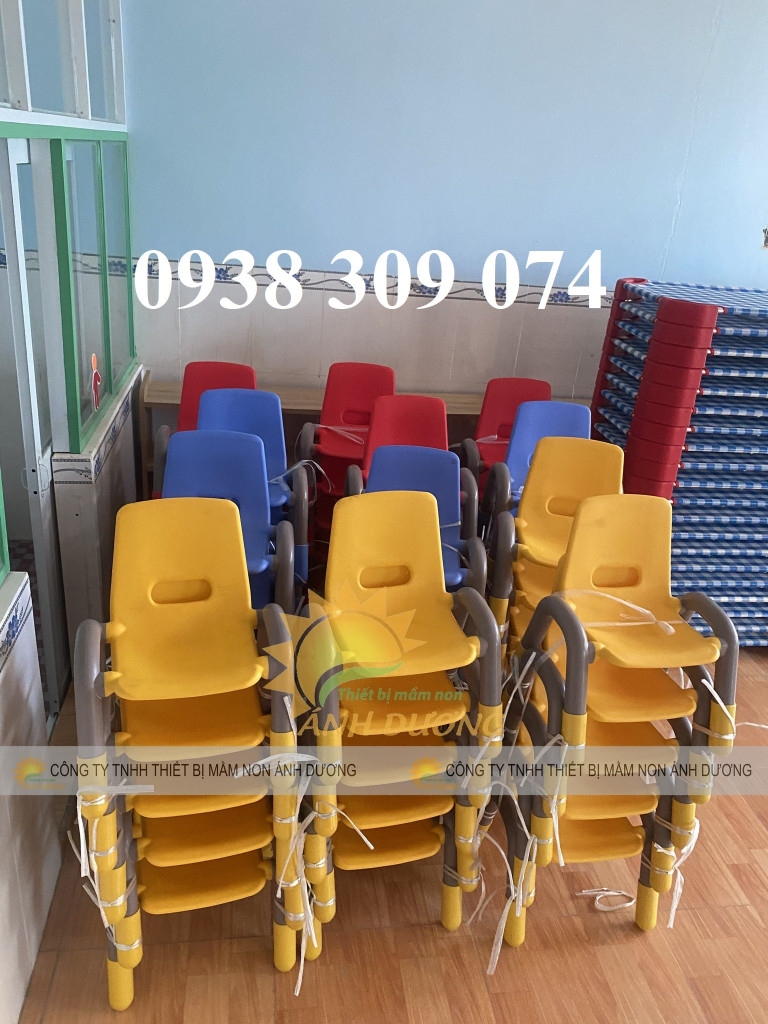 Bàn ghế nhựa mầm non: có 4 màu chuẩn vàng, xanh lá, đỏ, xanh dương
