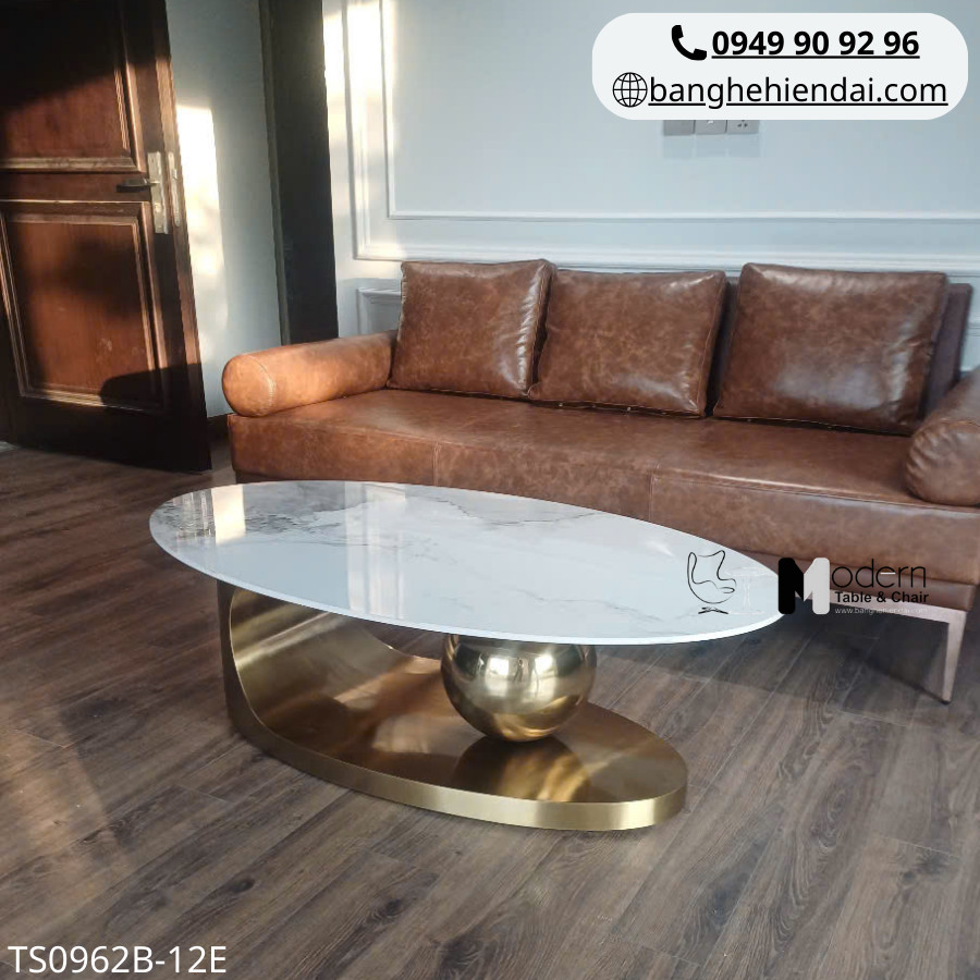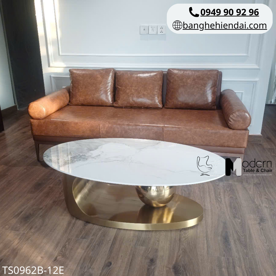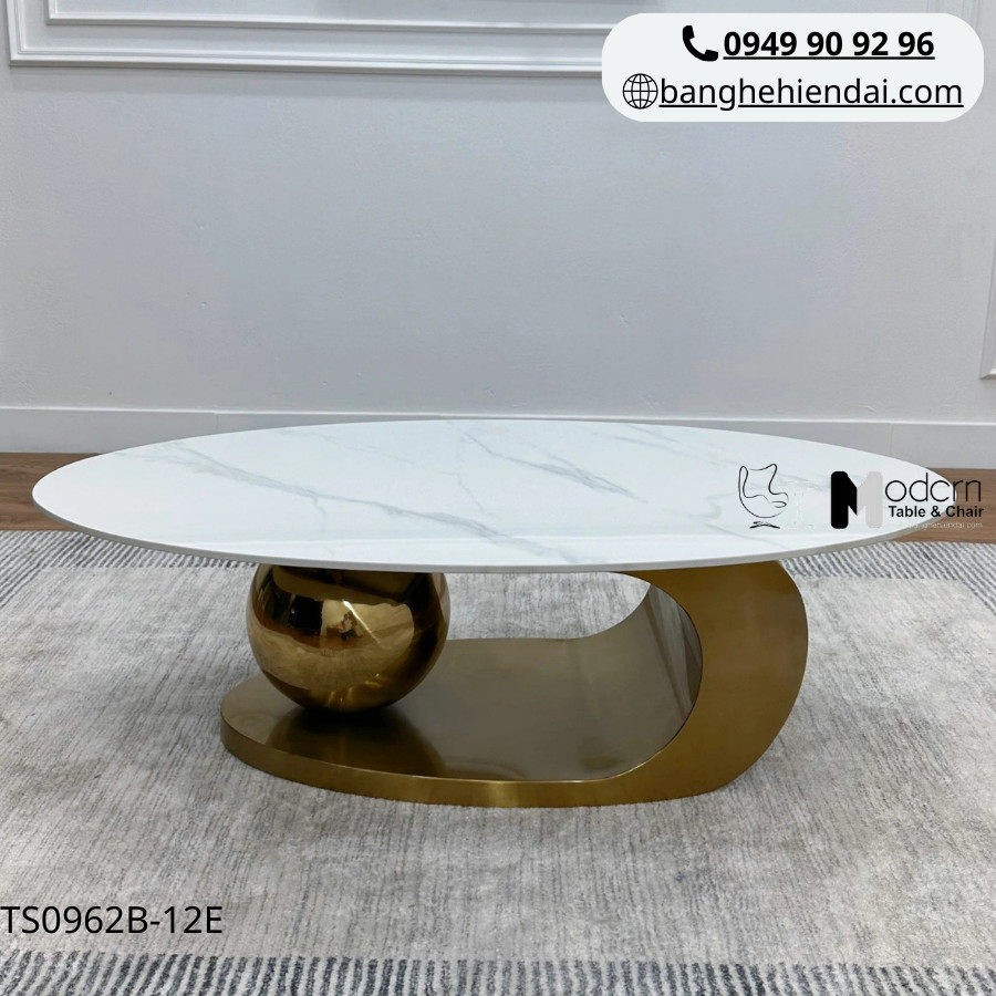 Bàn sofa mặt đá oval chân mạ màu vàng TS0962B-12E tại HCM