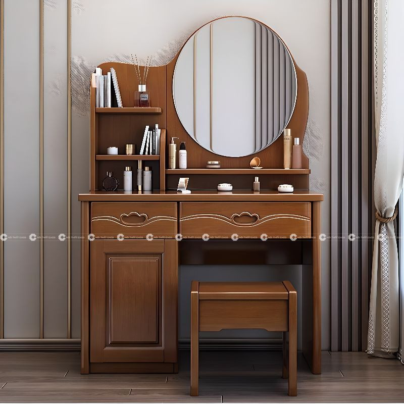 Bàn Trang Điểm Gỗ Sồi Màu Nâu Trầm Hiện Đại Tinh Tế