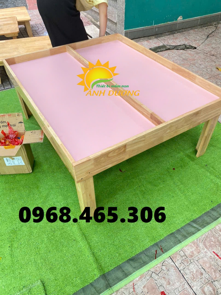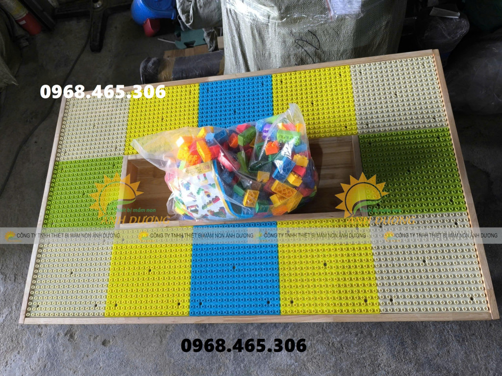 Bàn xếp lego trẻ em, bàn chơi lego cho bé bằng gỗ
