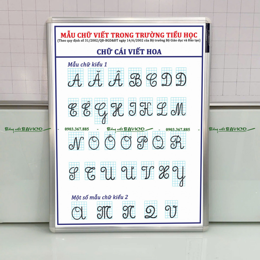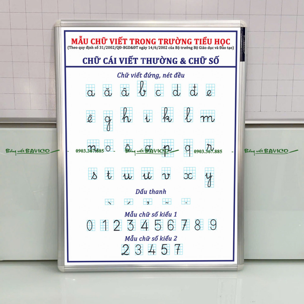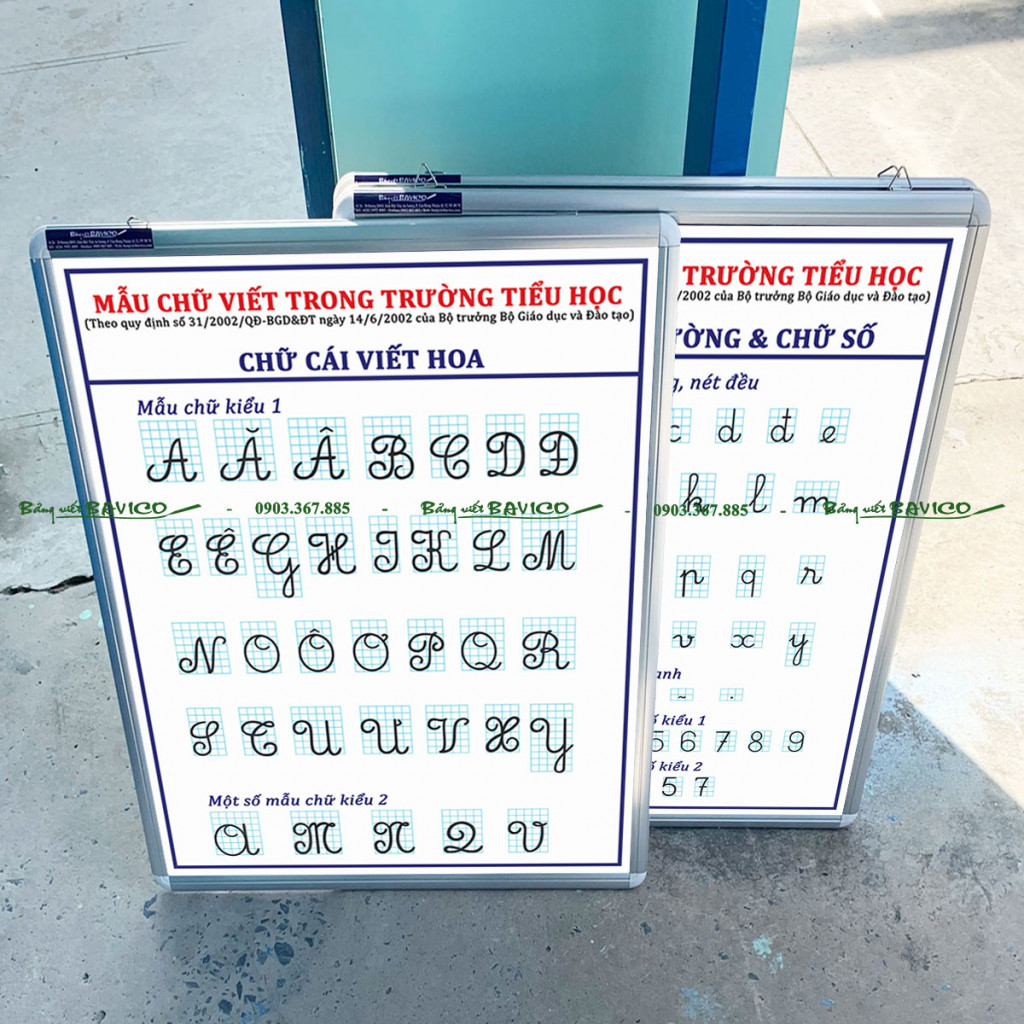 Bảng chữ cái tiếng Việt là công cụ trực quan thể hiện toàn bộ 29 chữ cái trong tiếng Việt, được trình bày rõ ràng, khoa học, phù hợp với chương trình giảng dạy của Bộ Giáo dục và Đào tạo. Bảng thường được treo cố định trên tường trong lớp học, giúp học sinh dễ dàng quan sát, ghi nhớ mặt chữ và cách đọc chuẩn ngay từ những năm đầu đời.