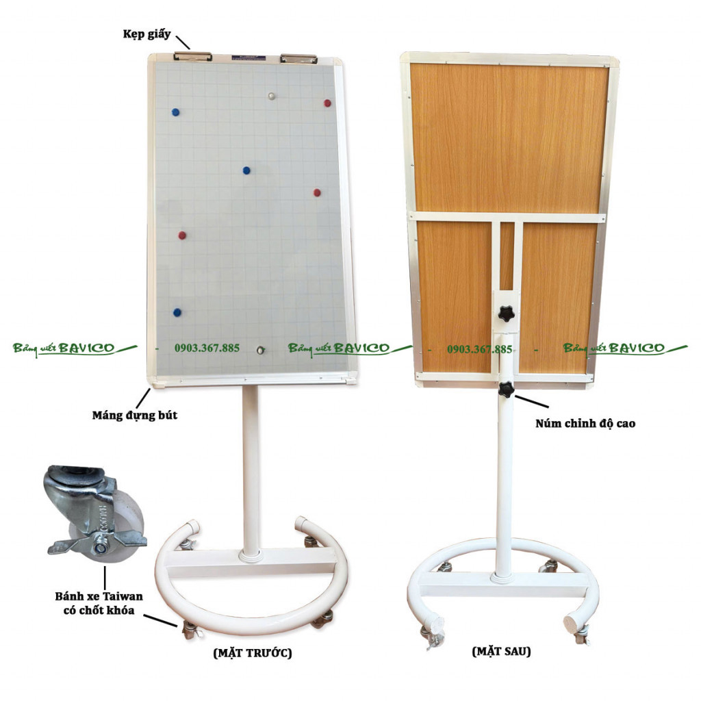 Bảng Flipchart Plus F2 có mặt bảng từ viết bút lông Hàn Quốc được nhập khẩu từ KOREA với chân sắt sơn tĩnh điện có bánh xe, màu trắng rất hài hòa.