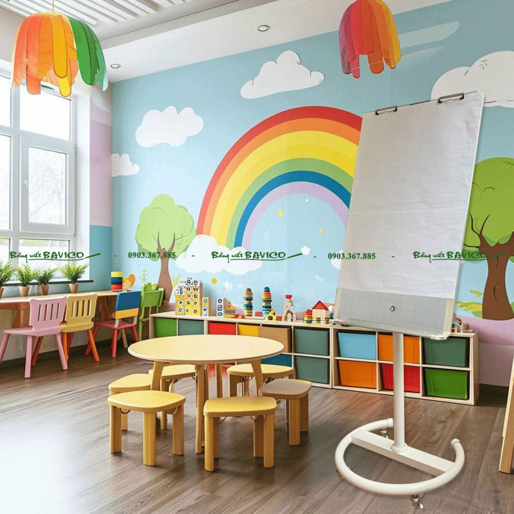 Bảng được gắn trên khung chân đứng chắc chắn, dễ dàng di chuyển, điều chỉnh độ cao và xoay linh hoạt trong quá trình sử dụng.