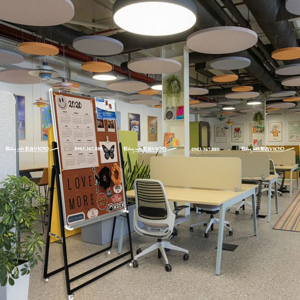Di chuyển linh hoạt: Chân bảng có bánh xe giúp dễ dàng thay đổi vị trí trong không gian làm việc.