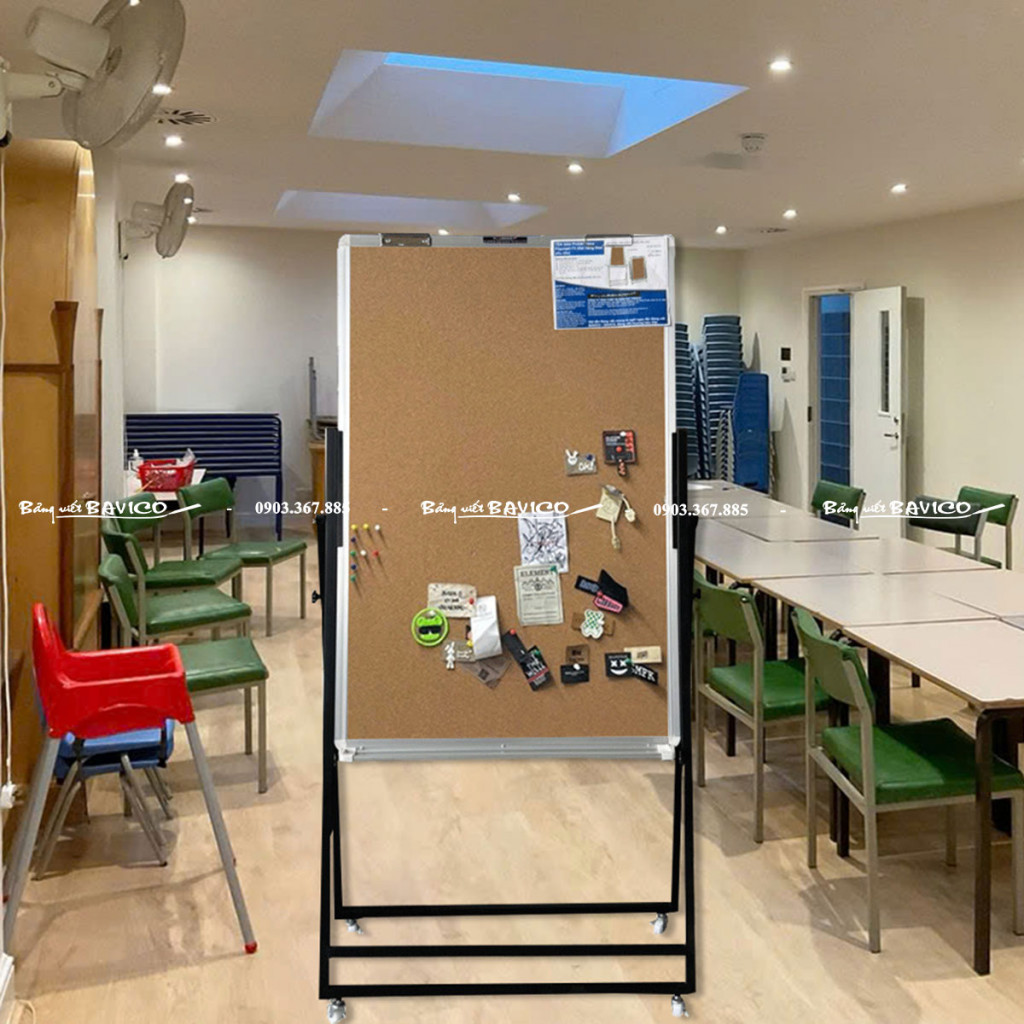 Đây là loại bảng ghim bần cao cấp có chân di động, được trang bị khung chân chữ U chắc chắn và bánh xe khóa cố định giúp di chuyển dễ dàng mà vẫn đảm bảo độ ổn định khi sử dụng.