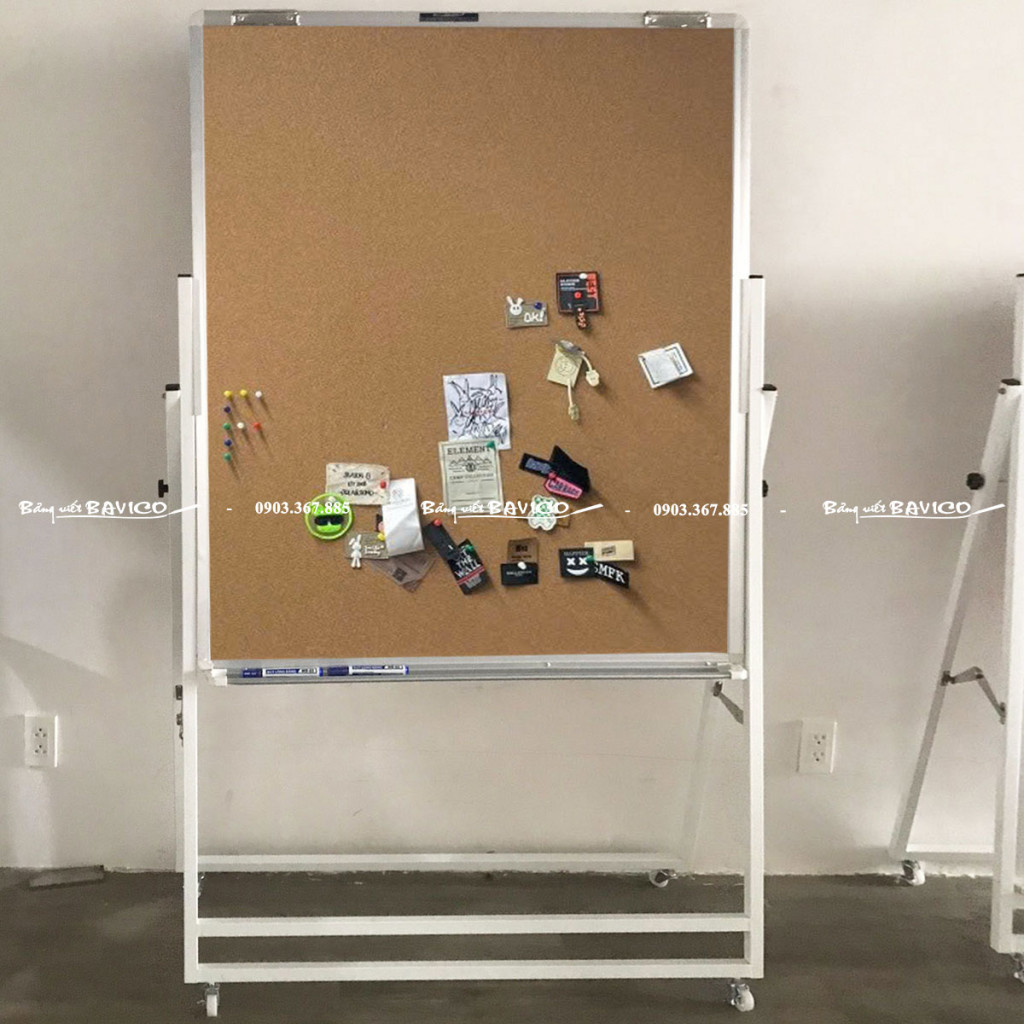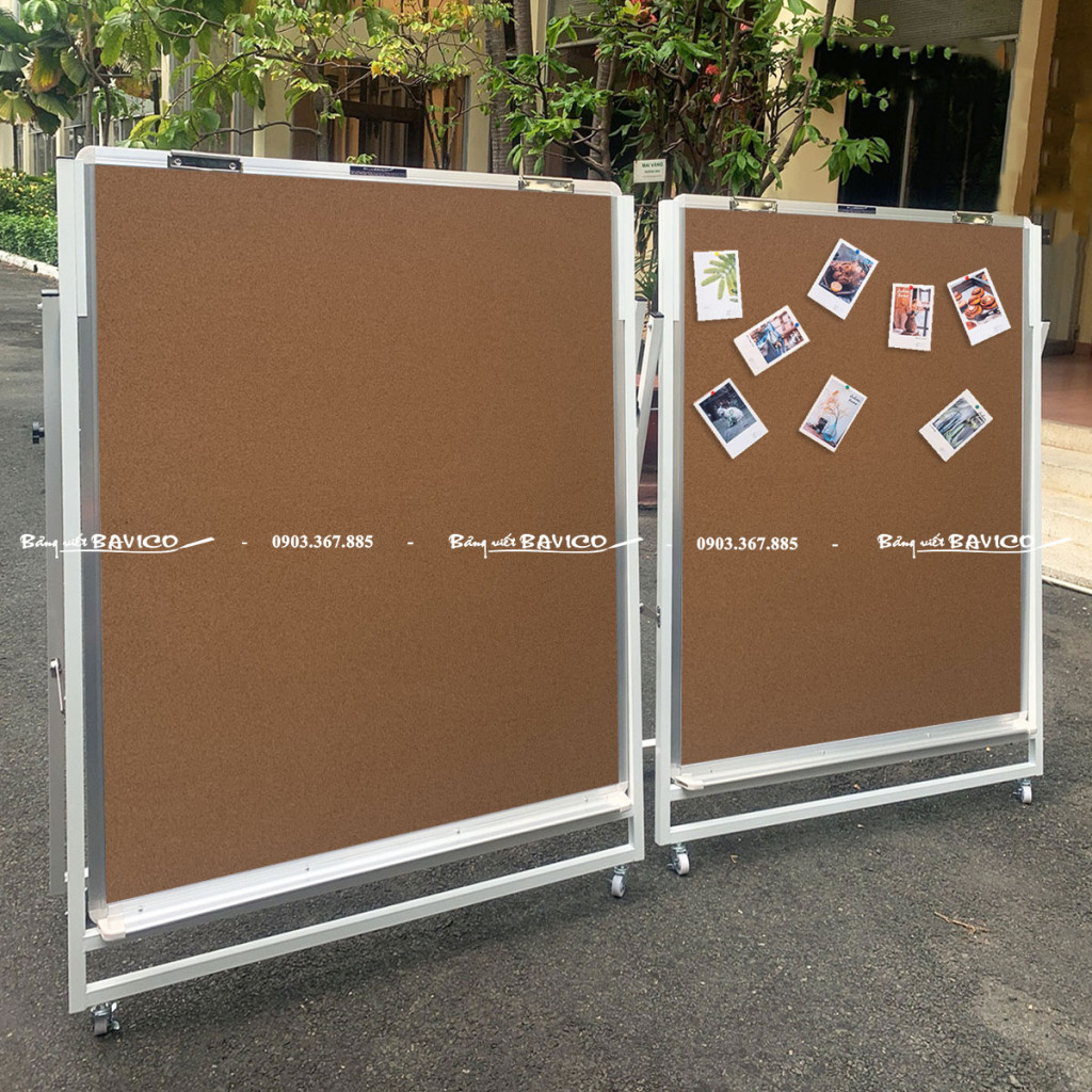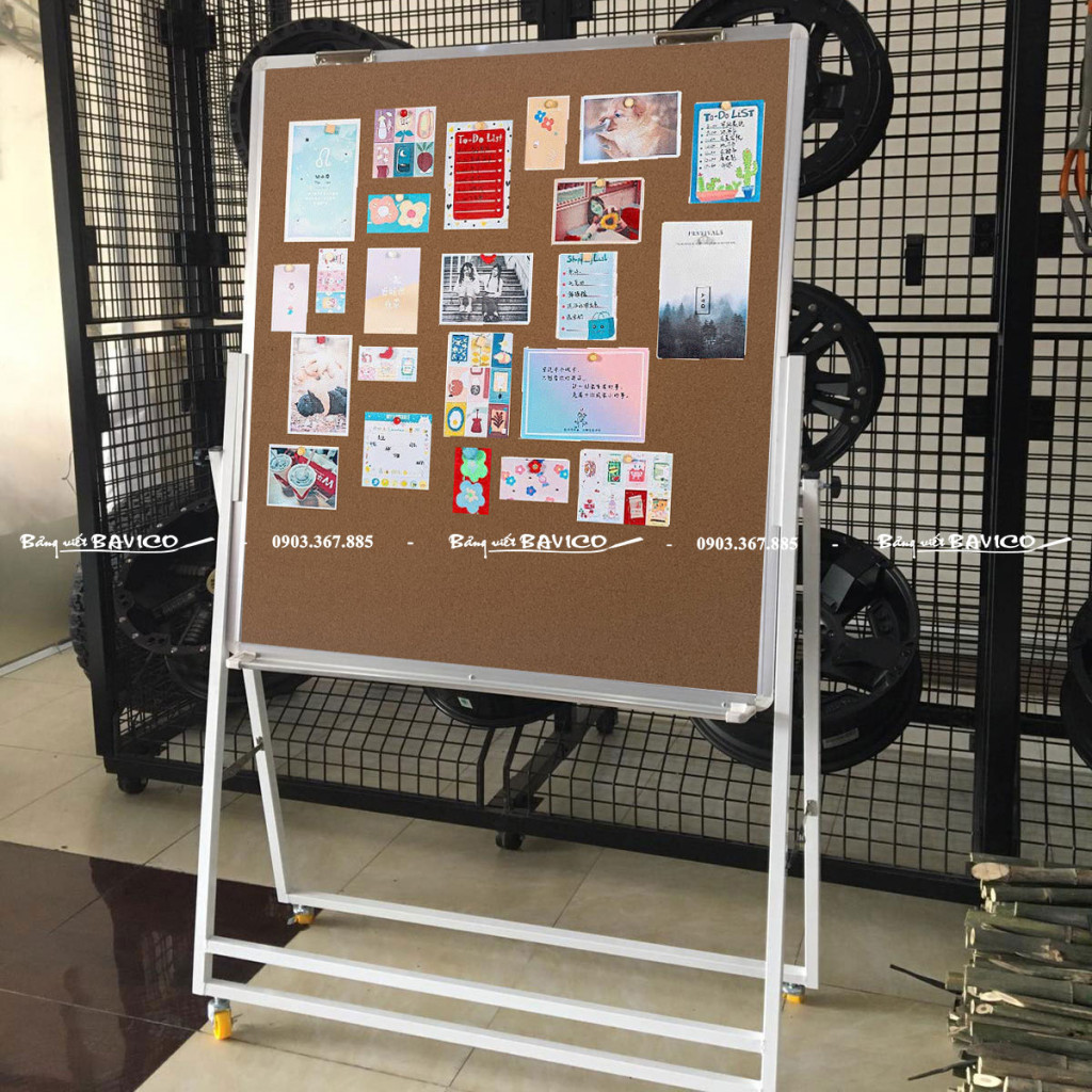 Đây là loại bảng ghim bần cao cấp có chân di động, được trang bị khung flipchart F3 chắc chắn và bánh xe khóa cố định giúp di chuyển dễ dàng mà vẫn đảm bảo độ ổn định khi sử dụng.