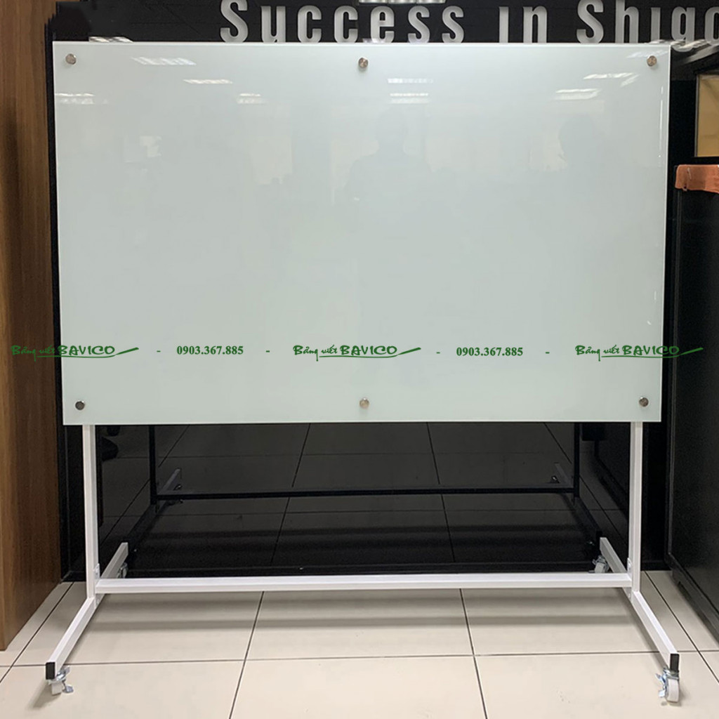 Đây là loại bảng được làm từ kính cường lực cao cấp, có độ dày và độ bền vượt trội, được gắn trên khung chữ T vững chắc có bánh xe di chuyển linh hoạt. Bảng dùng để viết bằng bút lông chuyên dụng cho kính, dễ dàng xóa sạch không để lại vết mờ, giúp tiết kiệm thời gian vệ sinh.