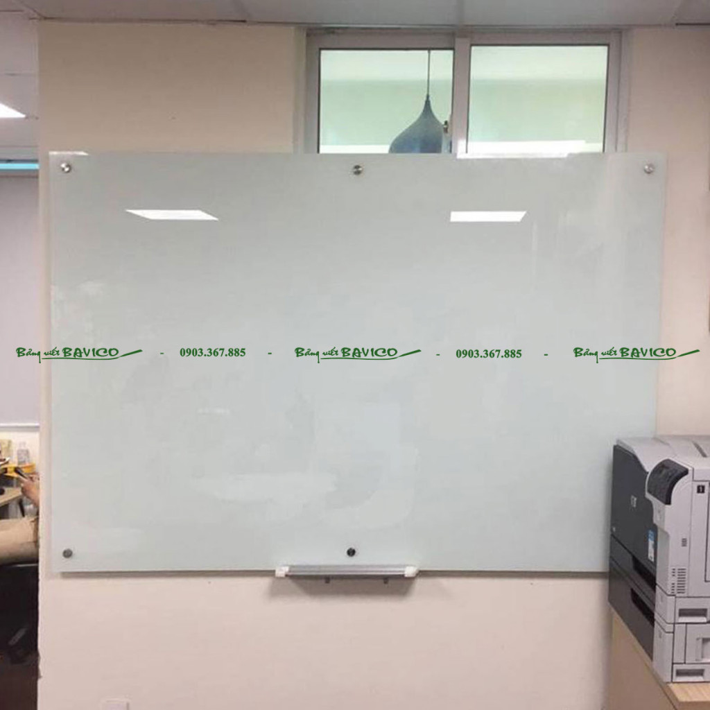 Bảng kính được lắp đặt lên tường bằng những bù lon inox chuyên dụng giúp cố định bảng thêm phần chắc chắn.
