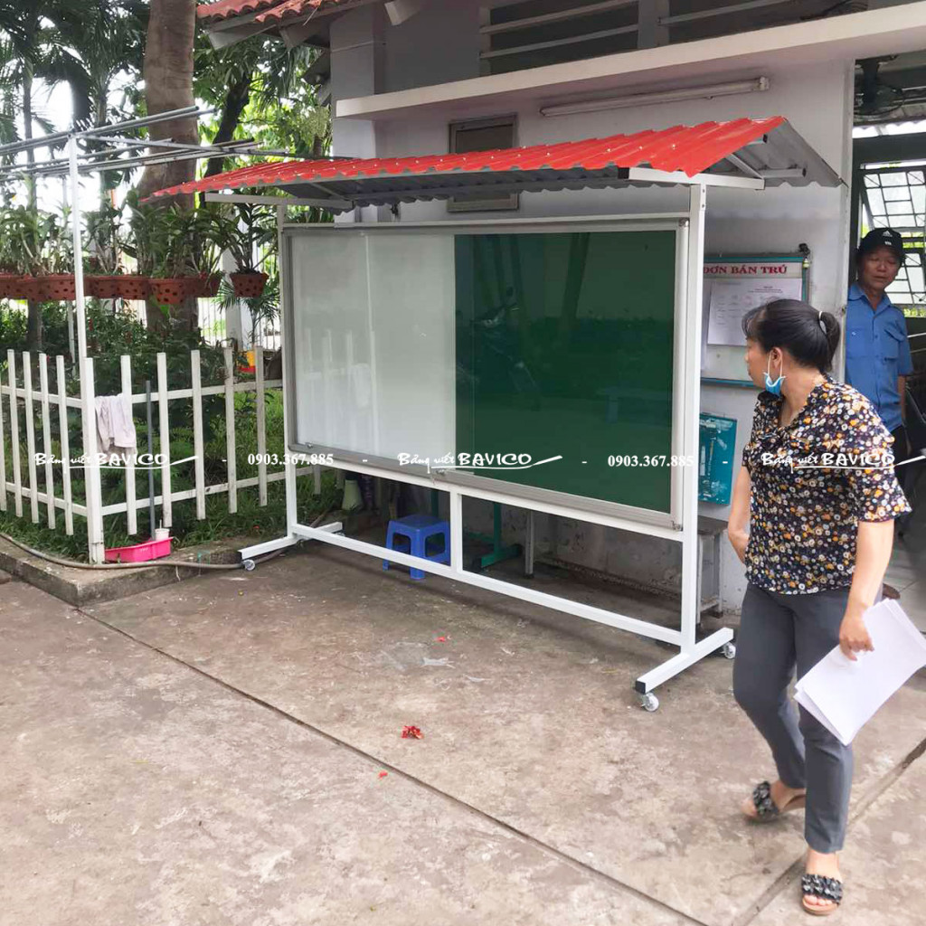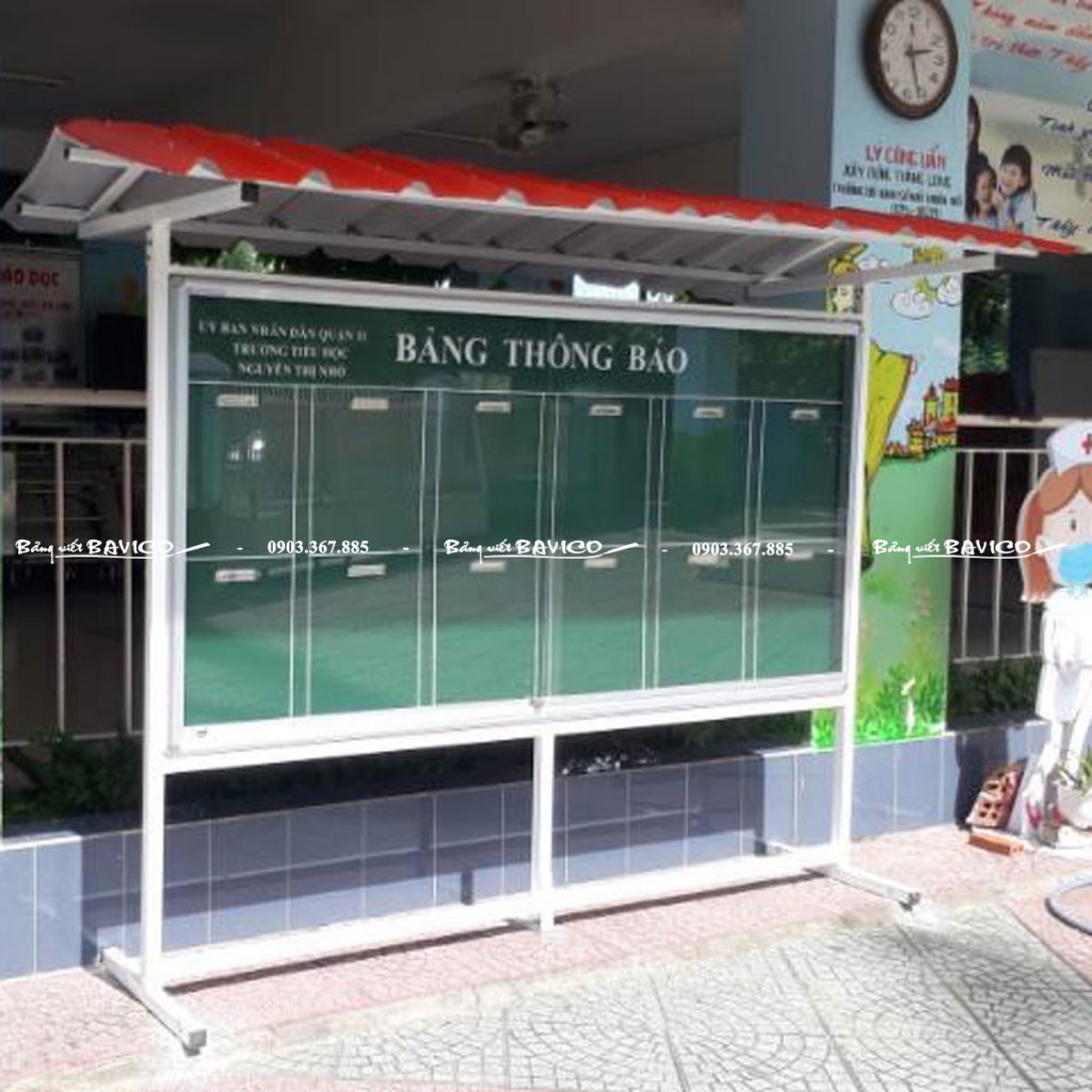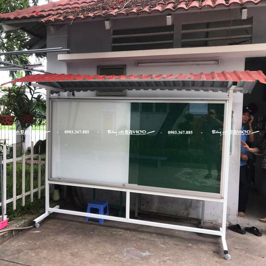 Bảng thông báo di động thường đặt ngoài hành lang để thông báo nội dung thông tin trên mặt bảng và khóa lại khi không sử dụng.