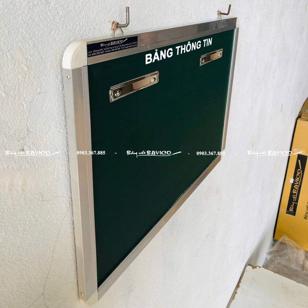 Bảng thông tin có gắn 2 kẹp giấy là sản phẩm hỗ trợ treo – kẹp thông báo được sử dụng rộng rãi tại trường học, cơ quan, văn phòng và các khu vực hành lang. Bảng được thiết kế gọn gàng, bền đẹp, giúp hiển thị thông tin rõ ràng, chuyên nghiệp và thuận tiện trong việc thay đổi nội dung hàng ngày.