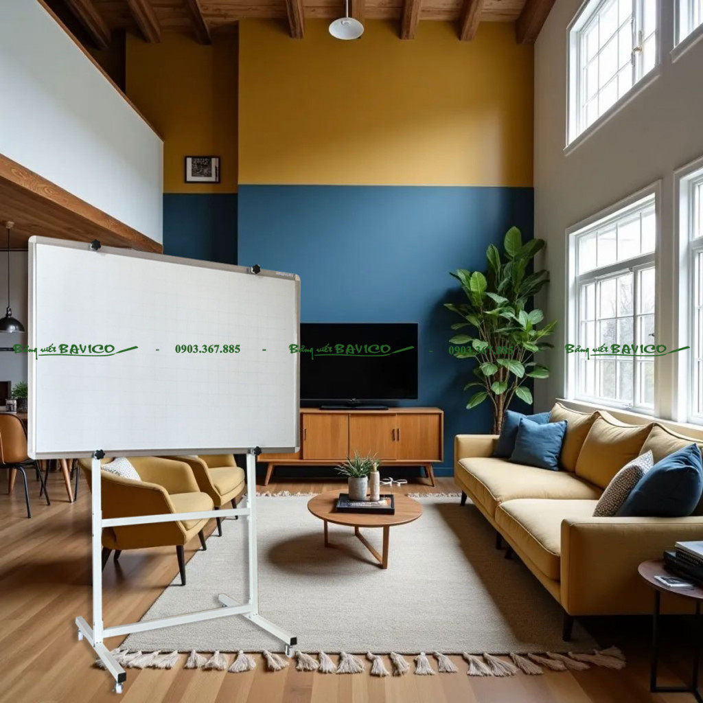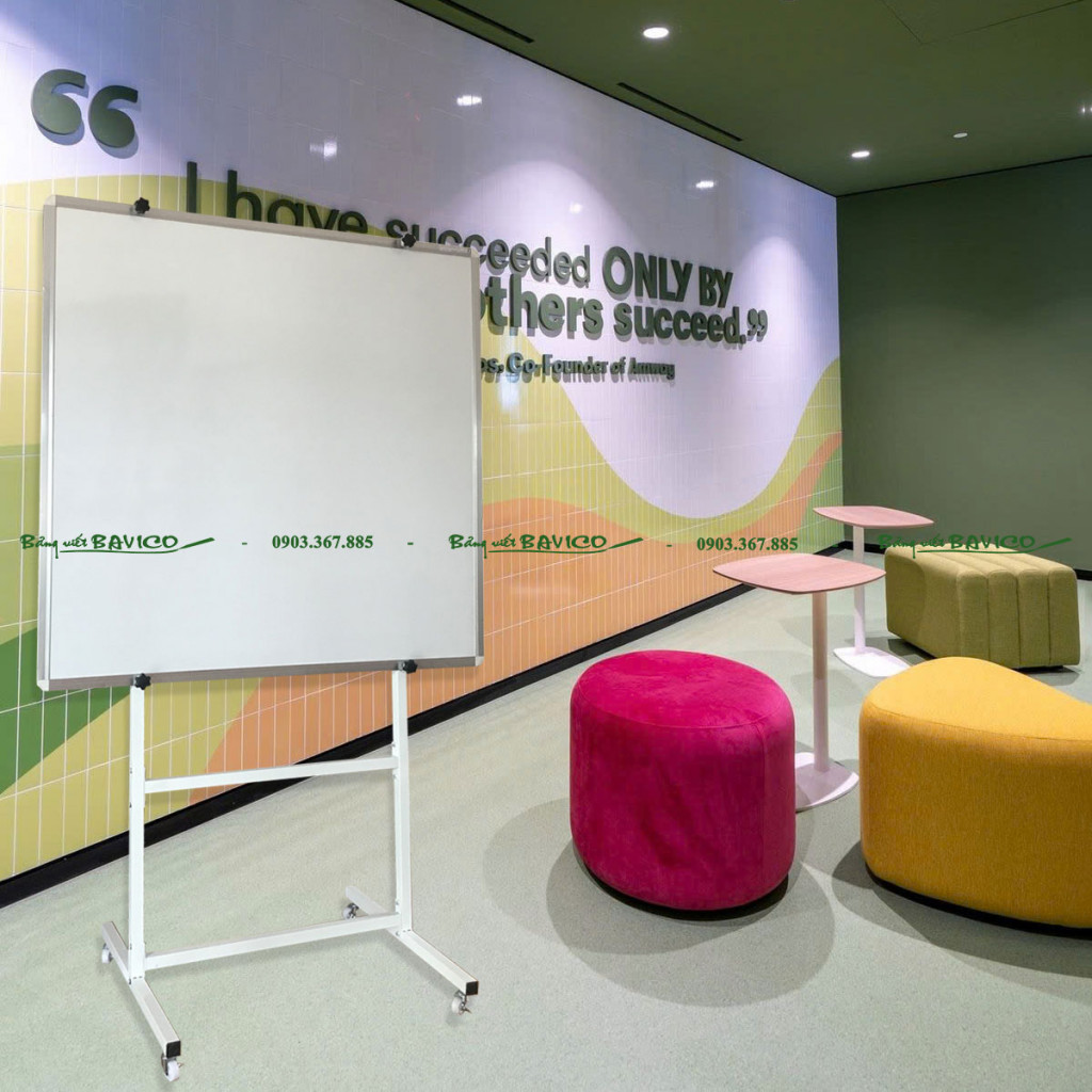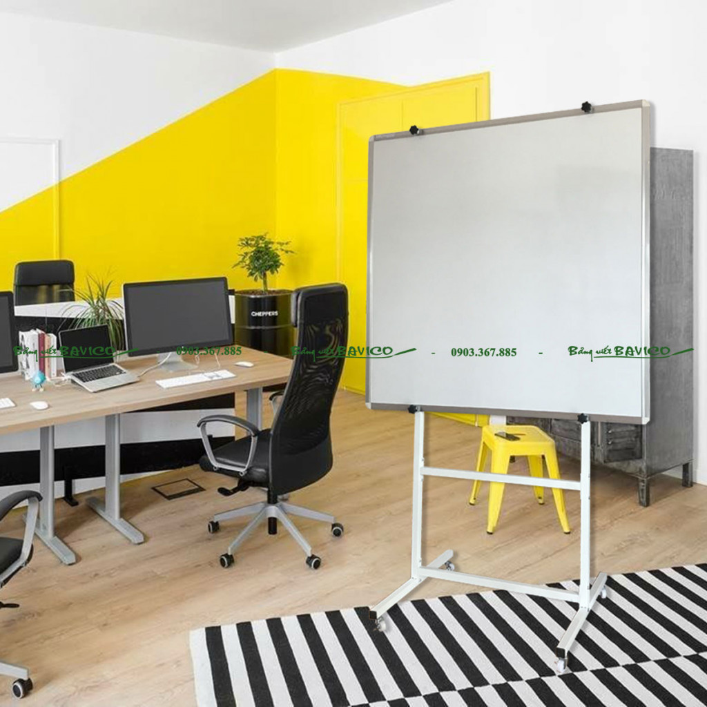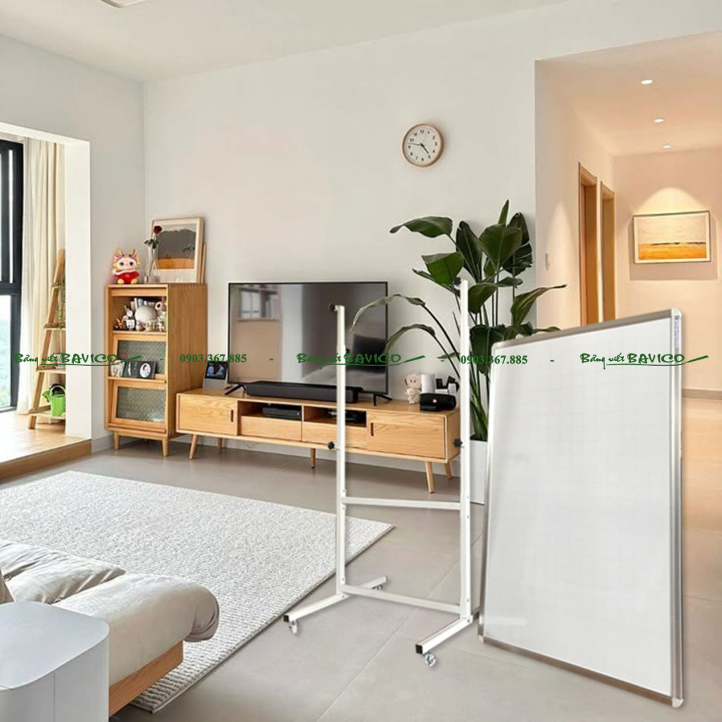 Đây là loại bảng trắng viết bút lông được gắn trên bộ chân di động có bánh xe , cho phép di chuyển dễ dàng trong nhiều không gian.