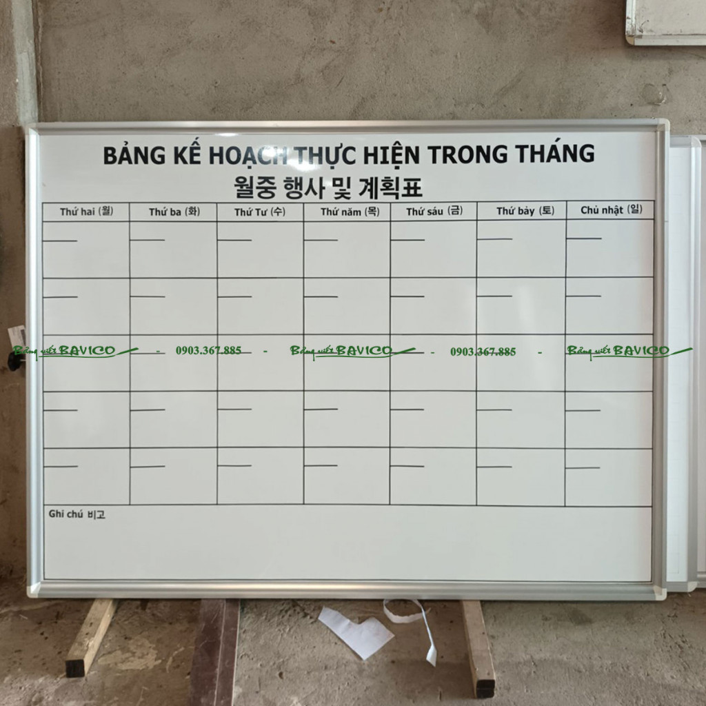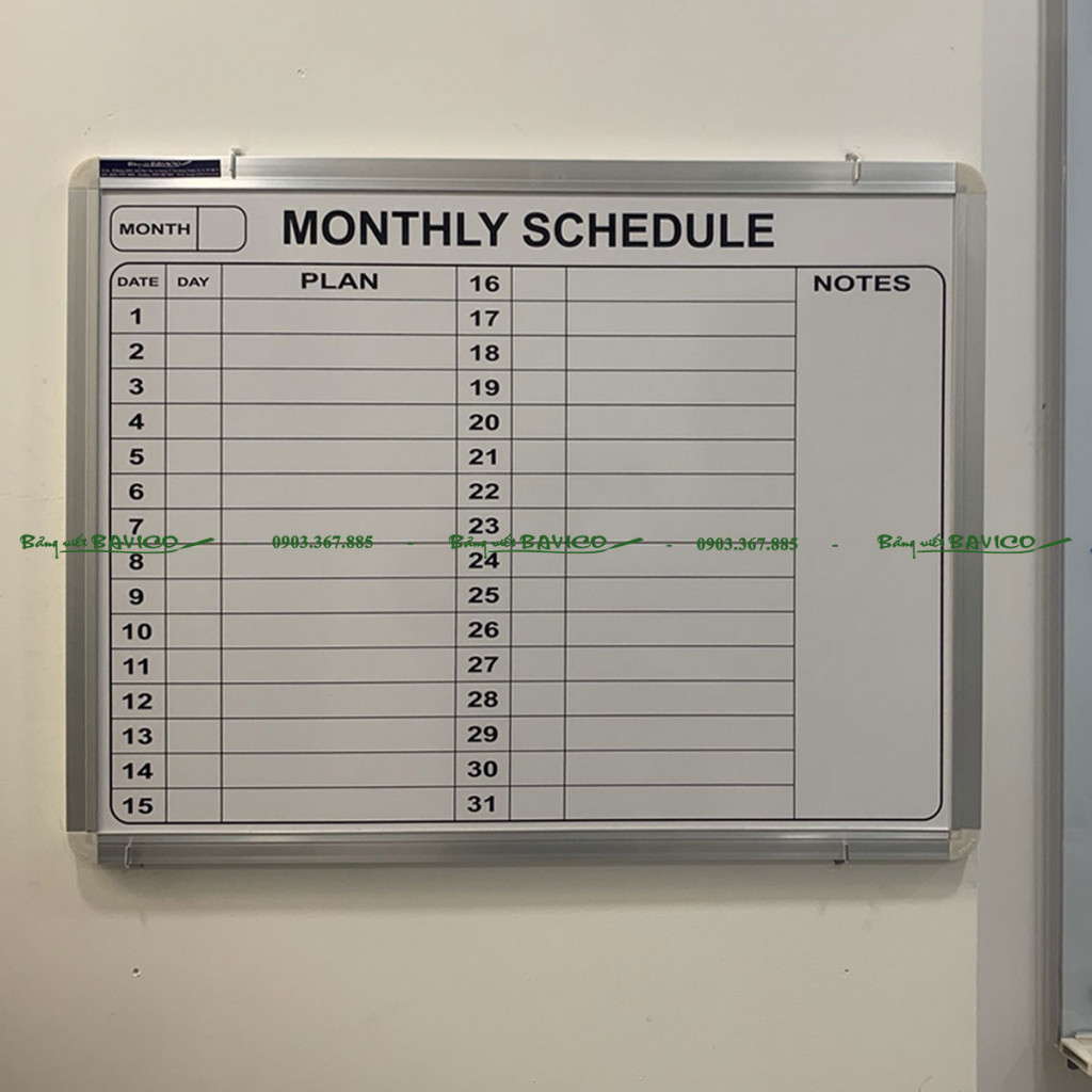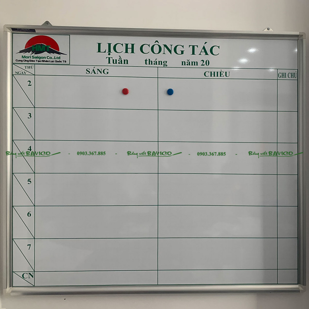 BẢNG TRẮNG DÁN DECAL THEO YÊU CẦU là bảng trắng có mặt bảng được phủ decal in nội dung theo đặt hàng của khách: Lịch công tác tháng; Lịch trực bảo vệ; Bảng thông báo; Theo dõi tiến độ; KPI – kế hoạch công việc; Biểu mẫu doanh nghiệp; ….