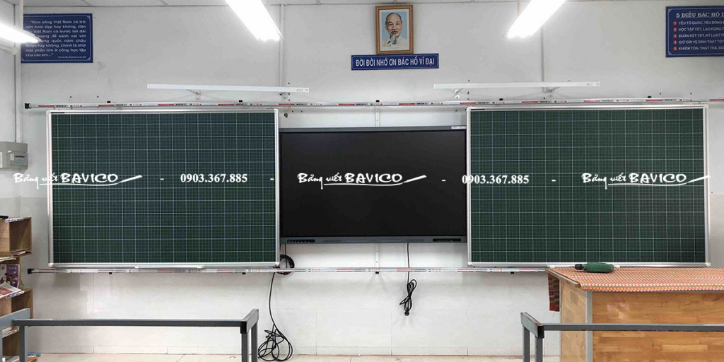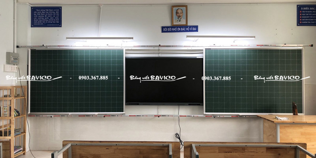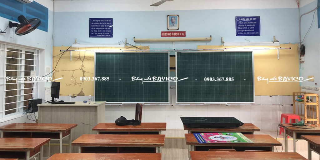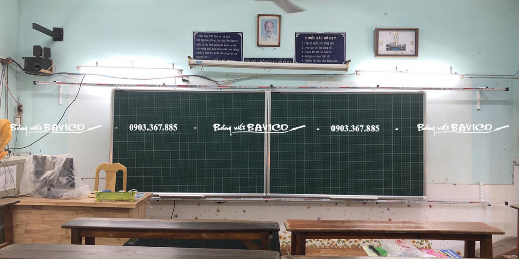 02 bảng trượt: Bảng từ viết phấn Hàn Quốc – Kích thước: cao 120cm × ngang 180cm.