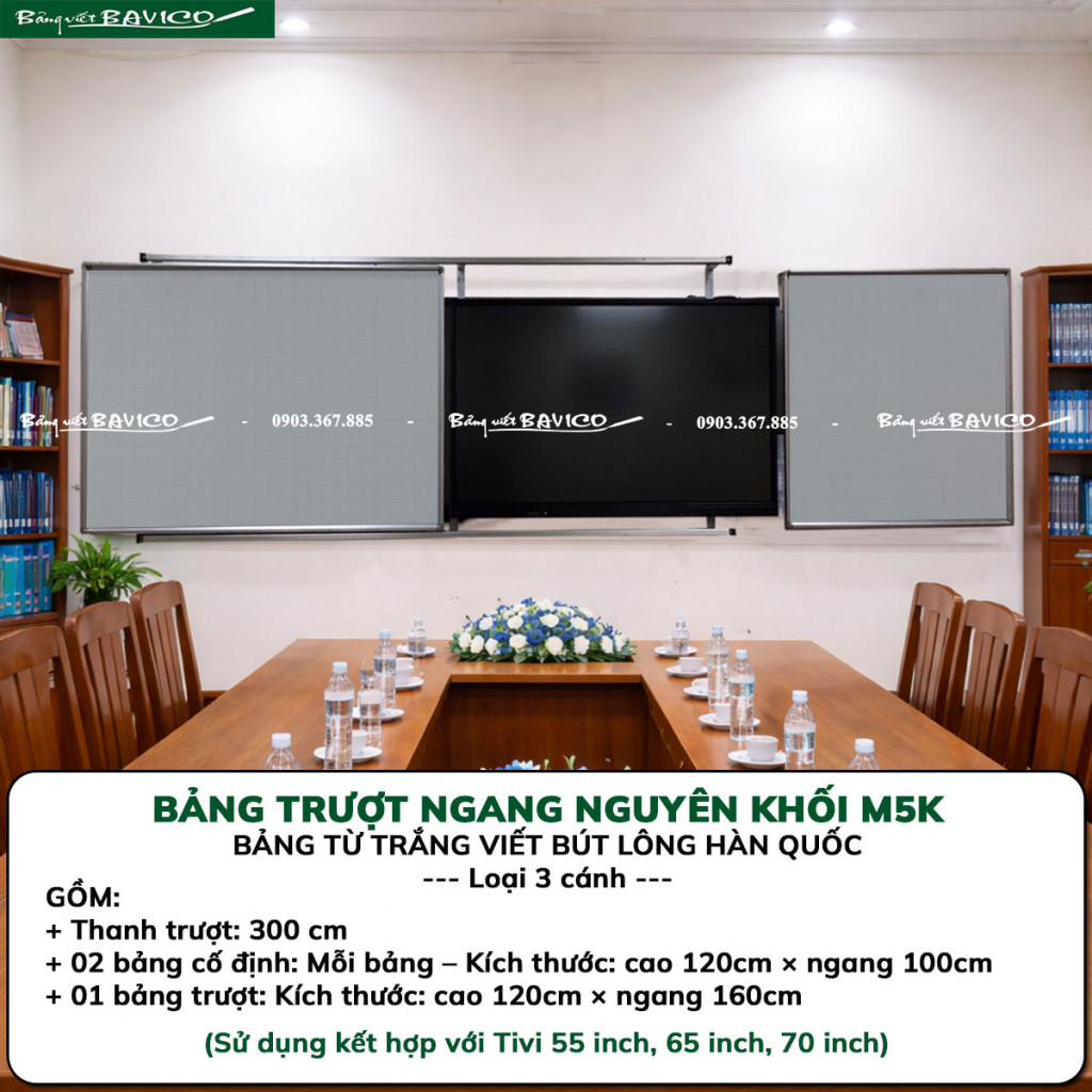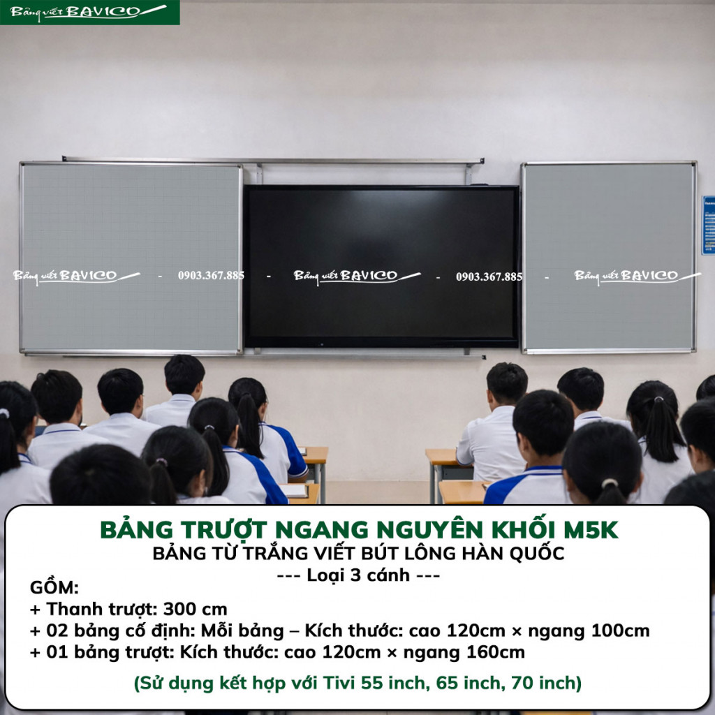 Trong xu hướng hiện đại hóa không gian giảng dạy và phòng họp, BẢNG TRƯỢT NGANG đang trở thành giải pháp tối ưu nhờ thiết kế linh hoạt, tiết kiệm diện tích và tăng tối đa không gian trình bày. Nổi bật trong dòng sản phẩm này là BẢNG TRƯỢT NGANG NGUYÊN KHỐI MẪU M5K (BLTHQ) do BAVICO sản xuất và lắp đặt trực tiếp.