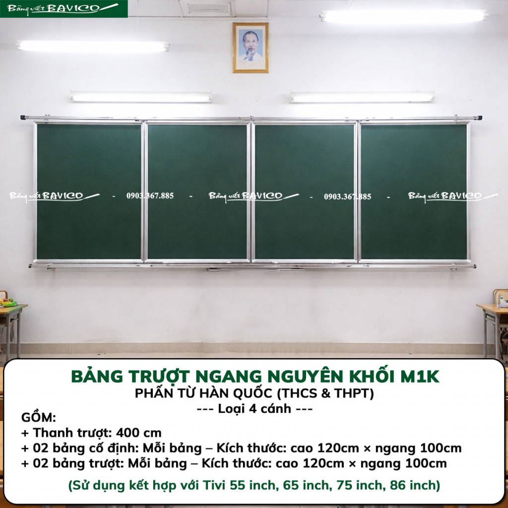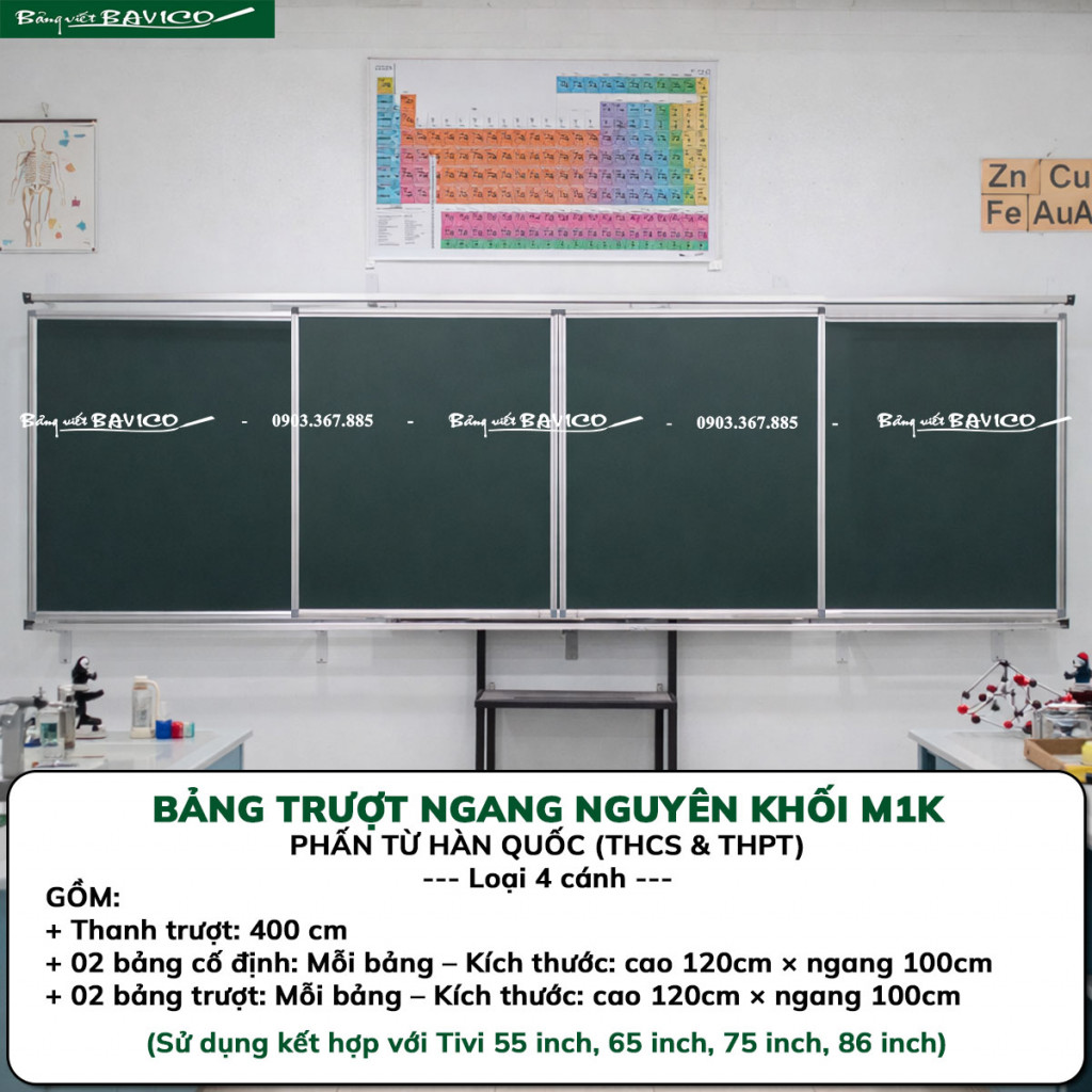 Mẫu BẢNG TRƯỢT NGANG M1K được thiết kế theo kích thước chuẩn trường học, phù hợp cho các lớp học có nhu cầu trình bày nhiều nội dung như Toán, Lý, Hóa, Sinh.