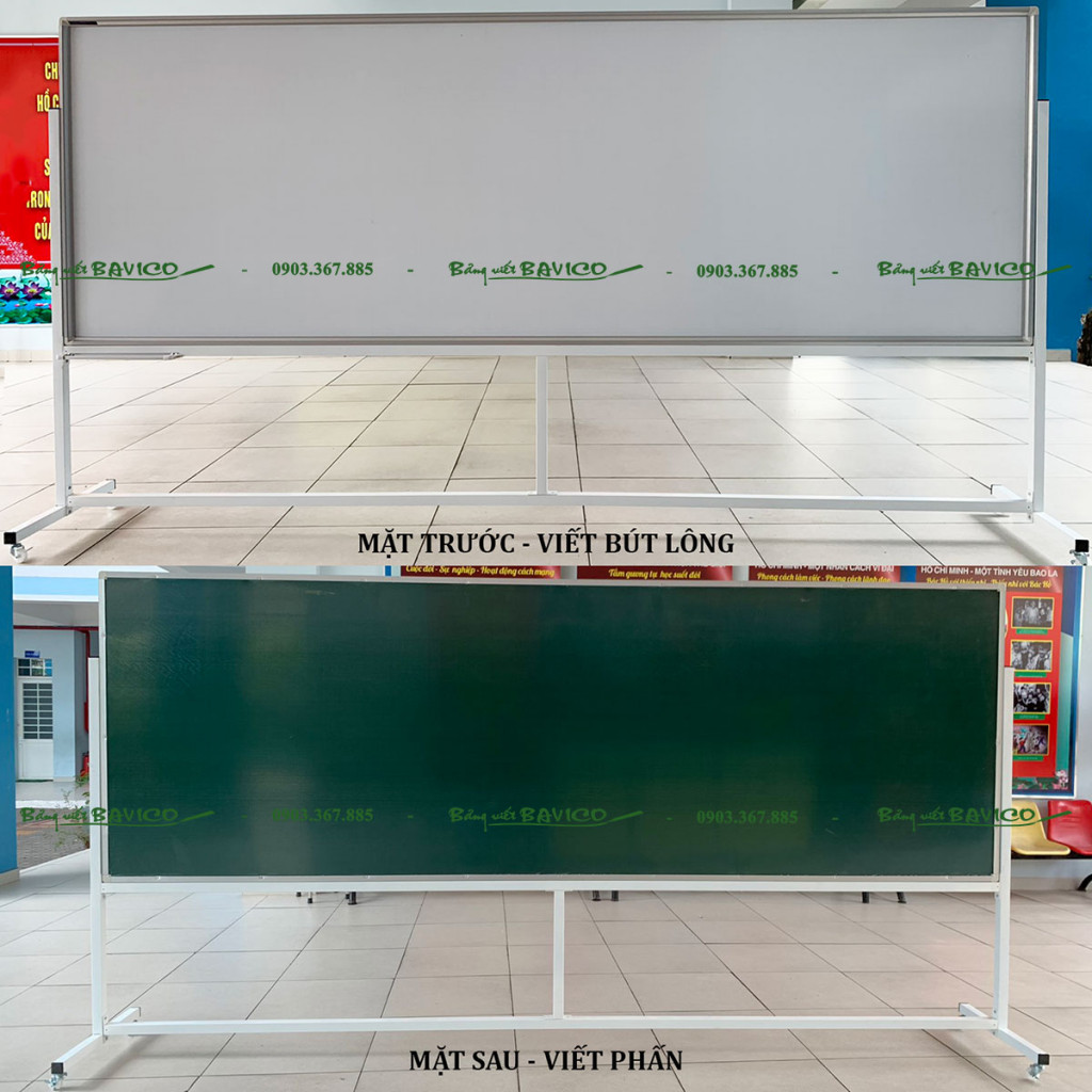 Đây là loại bảng viết bút lông hoặc viết phấn (tùy mặt bảng), sử dụng mặt thép từ Hàn Quốc chất lượng cao. Bảng có khả năng hít nam châm, giúp gắn tài liệu dễ dàng. Mặt bảng được lắp trên khung nhôm và chân chữ T có bánh xe, tạo nên sự cơ động và tiện dụng trong quá trình sử dụng.