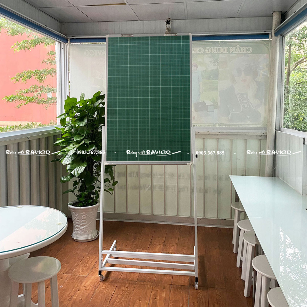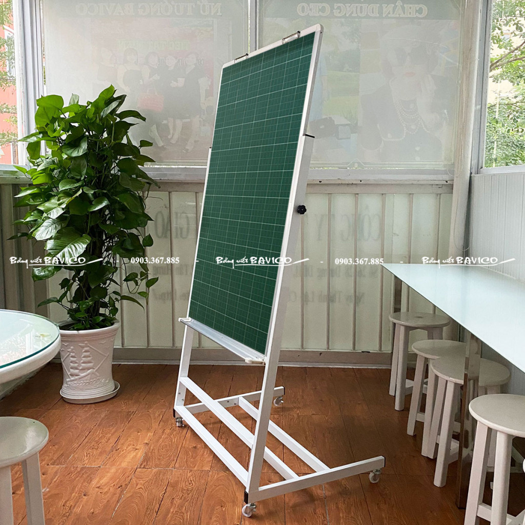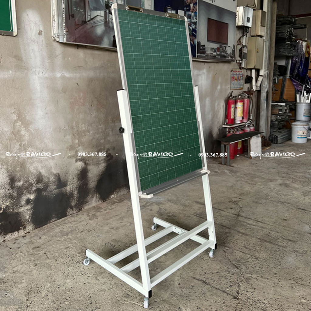 Bảng được gắn trên chân Flipchart inox có bánh xe, có thể điều chỉnh độ cao từ 1,7m – 2,2m, phù hợp với nhiều độ tuổi học sinh và không gian lớp học. Ngoài ra, bảng có kẹp giấy flipchart giúp trình bày bài giảng linh hoạt, tiện lợi khi cần minh họa hoặc viết nhanh nội dung.