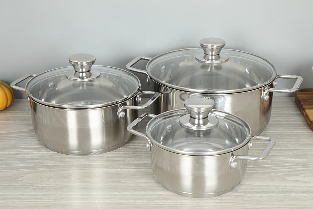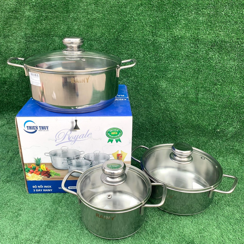 "Bộ 3 nồi inox 3 đáy Rainy Quai Đũa nắp kính