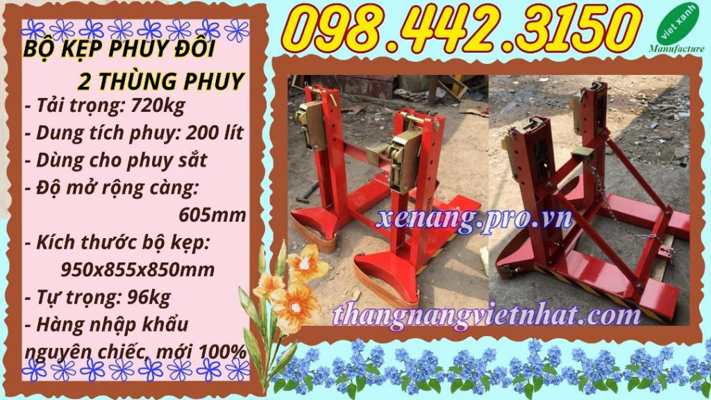 2. Bộ kẹp phuy đôi - Càng kẹp phuy đôi - Bộ kẹp thùng phuy đôi 2 phuy - Bộ kẹp gắp 2 thùng phuy