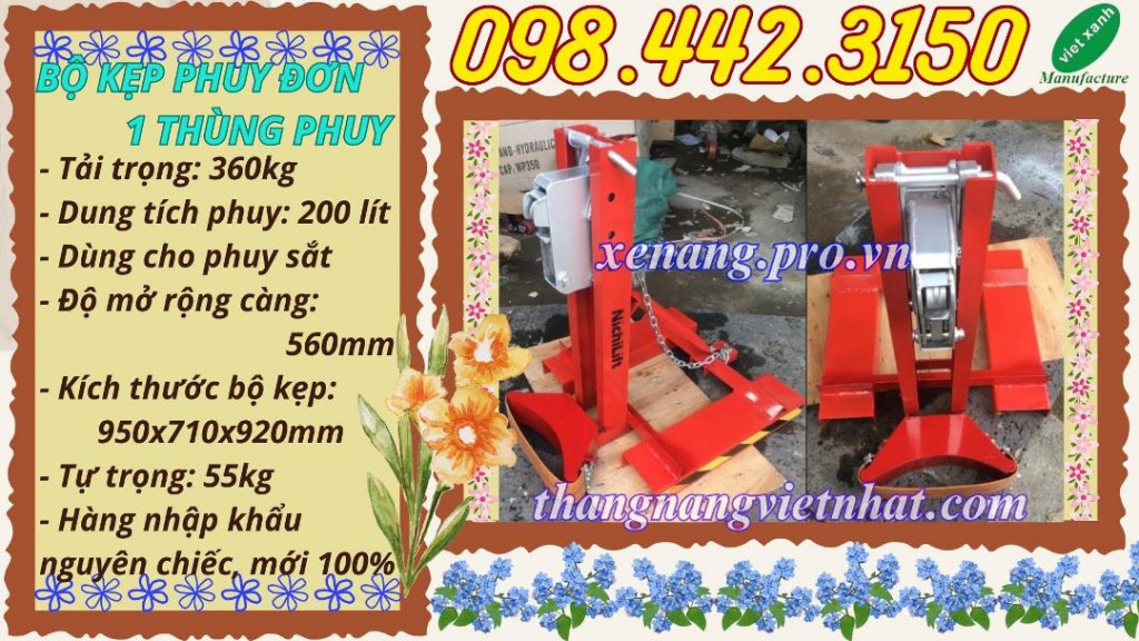 1. Bộ kẹp phuy đơn - Càng kẹp phuy đơn - Bộ kẹp thùng phuy đơn 1 phuy - Bộ kẹp gắp 1 thùng phuy