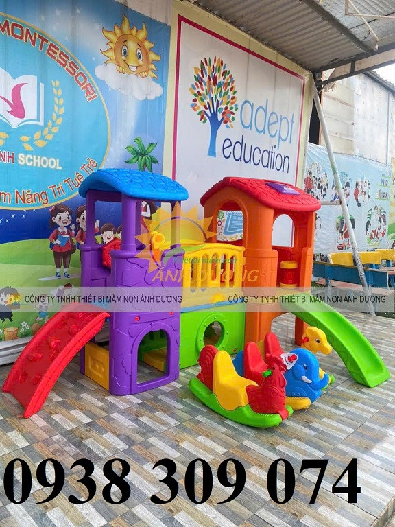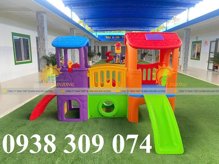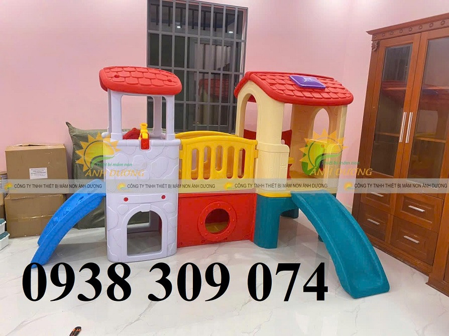 Bộ nhà leo cầu trượt 2 khối nhà đa năng
