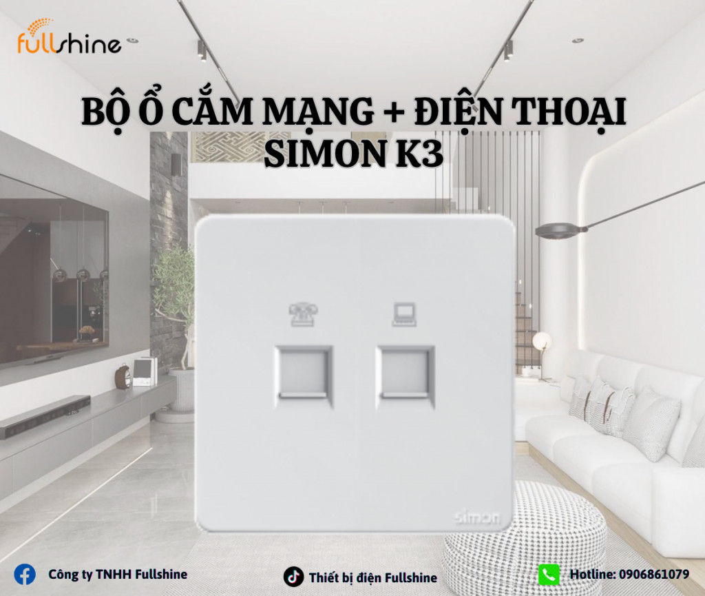 Bộ ổ cắm mạng + điện thoại Simon K3 chính là lựa chọn hoàn hảo, kết hợp 2 chức năng trong 1, vừa tiết kiệm diện tích vừa tăng tính thẩm mỹ.