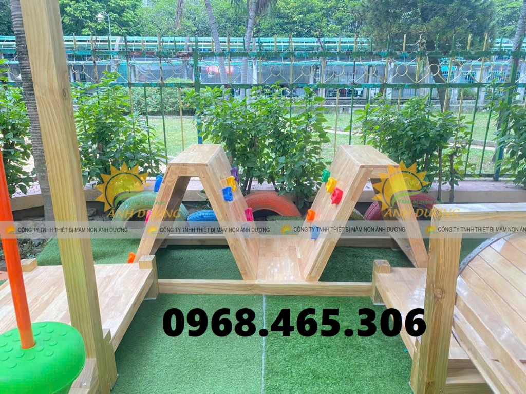 Bộ đồ chơi cầu trượt gỗ, thang leo gỗ được kết cấu chắc chắn, an toàn, cực kì bền bỉ với điều kiện khí hậu Việt Nam, đảm bảo an toàn cho các bé khi vui chơi và tiếp xúc.