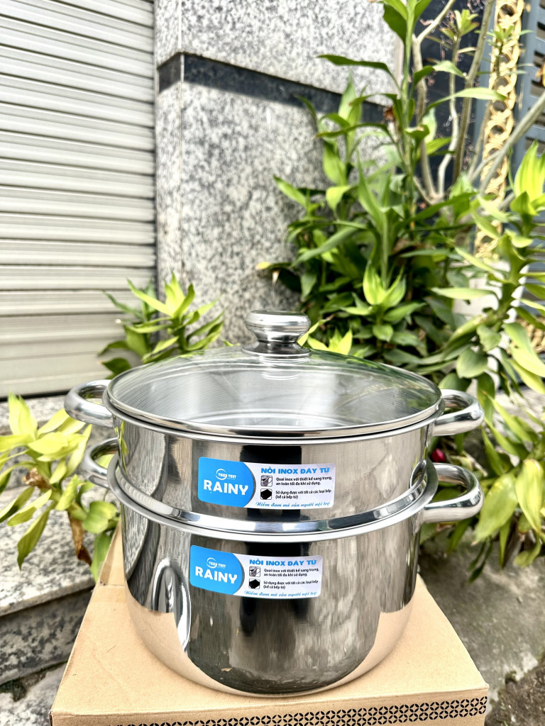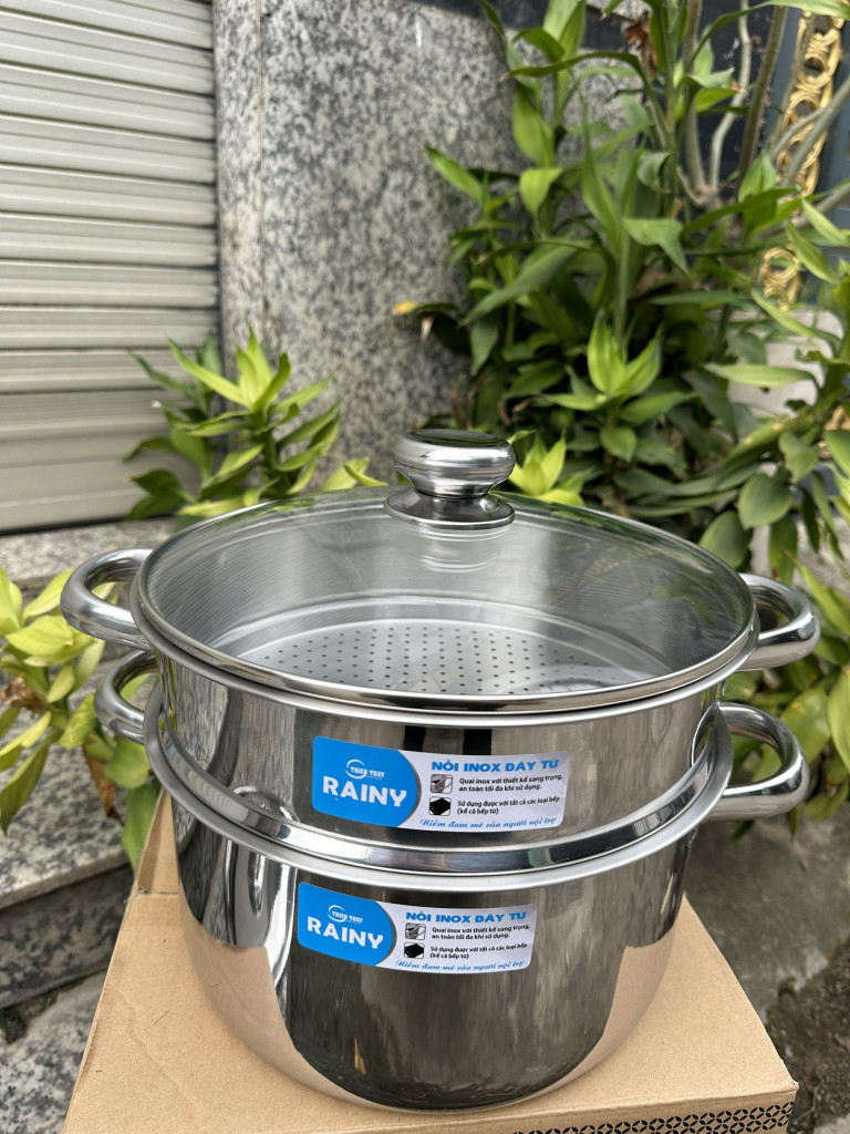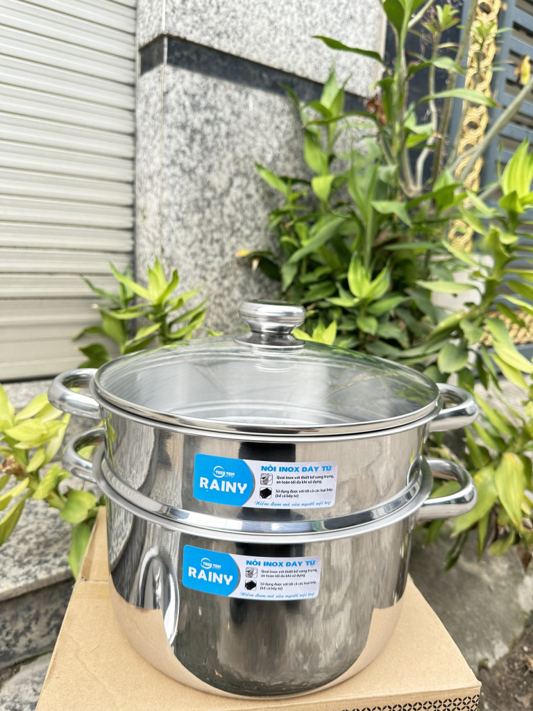 Bộ Xửng inox 3 đáy nắp kính Rainy 20 RNX3-206DK