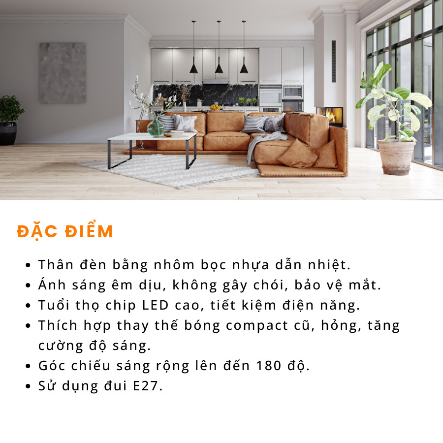 - Thích hợp thay thế bóng compact cũ, hỏng, tăng cường độ sáng.