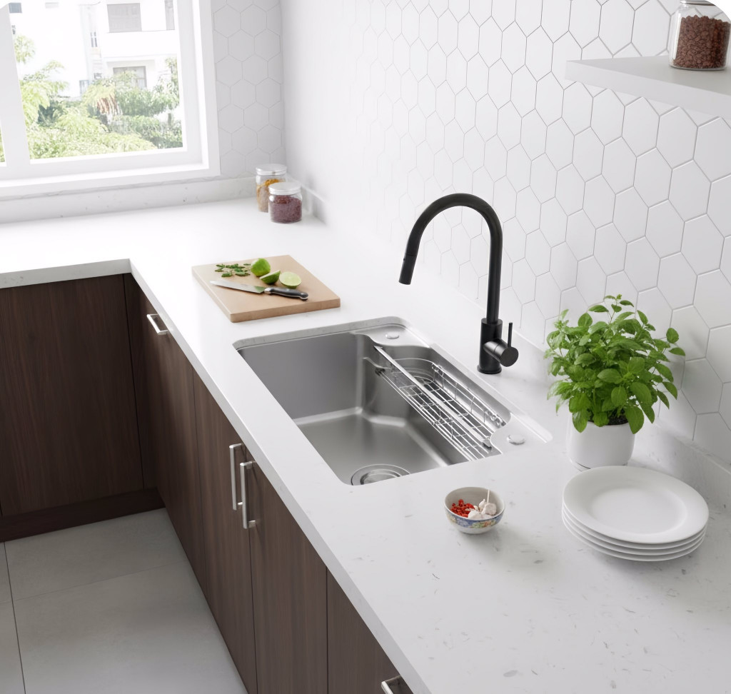 Một chiếc chậu vòi đẹp không chỉ nâng tầm gian bếp mà còn thể hiện gu thẩm mỹ của gia chủ.