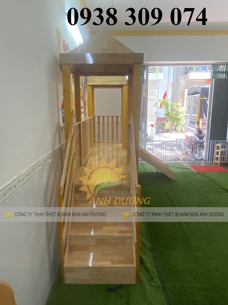 Cầu trượt gỗ mầm non, cầu trượt liên hoàn gỗ trong nhà