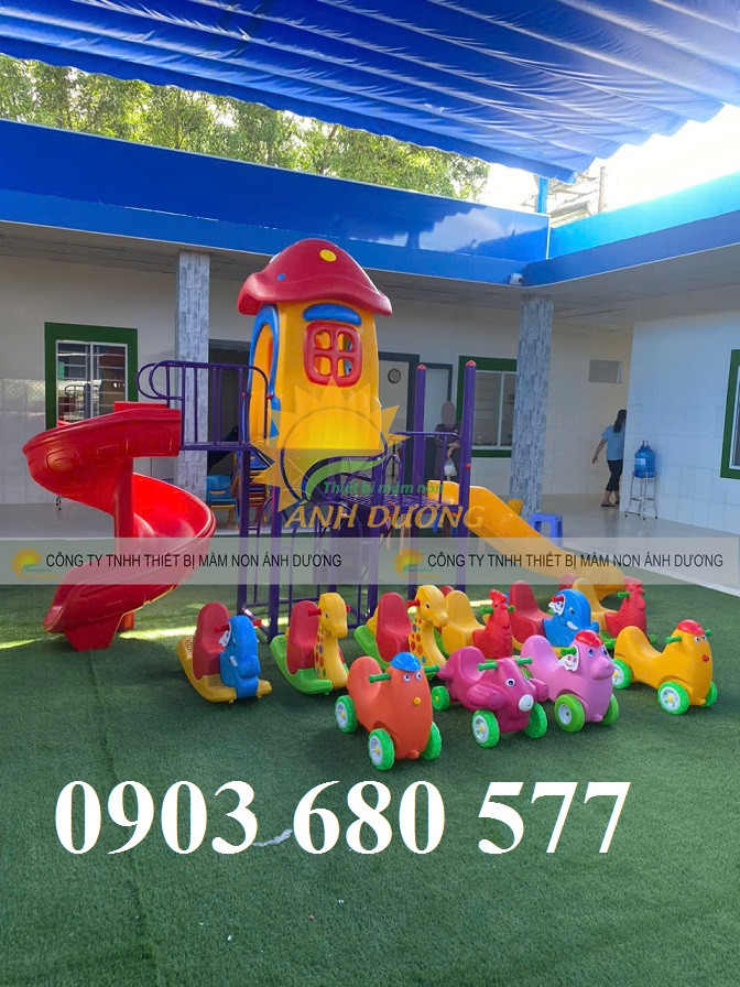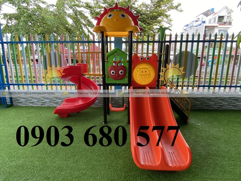 - Cầu trượt mầm non gồm các chi tiết máng trượt, phù điêu, ghế xích đu được làm bằng nhựa PP nguyên sinh. Các ống trụ của cầu trượt liên hoàn được làm từ sắt thép, sơn tĩnh điện chống sét chuyên cho ngoài trời.