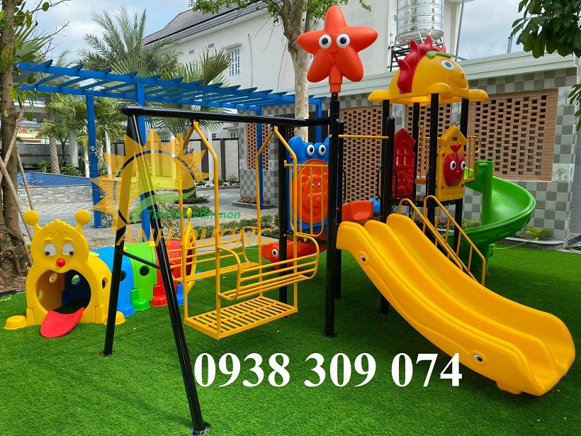 Cầu trượt lnhà khối iên hoàn, cầu trượt liên hoàn xích đu