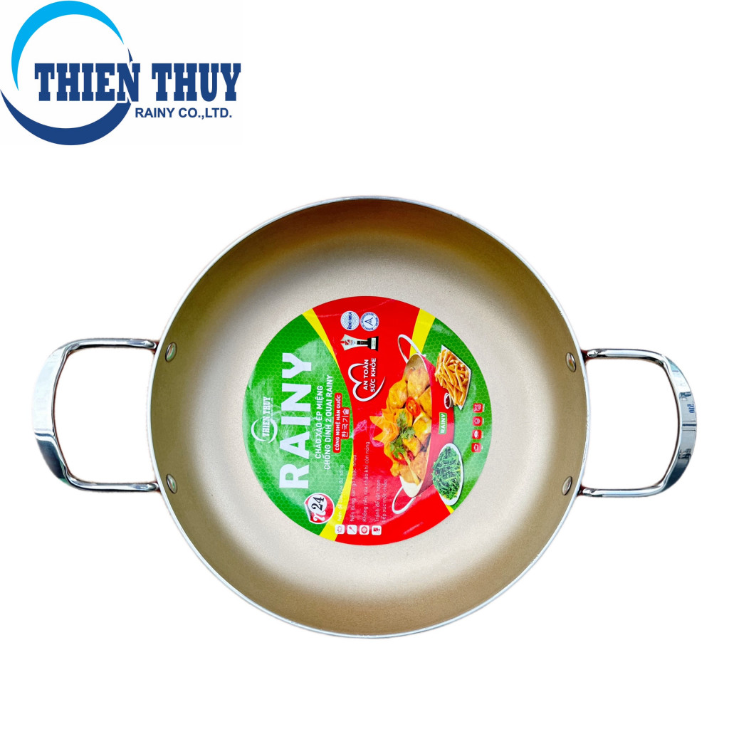 Chảo Chống Dính 2 Quai Rainy 24 - Được làm bằng hợp kim nhôm với thân chảo dày 2,5mm, bền đẹp, cứng chắc.