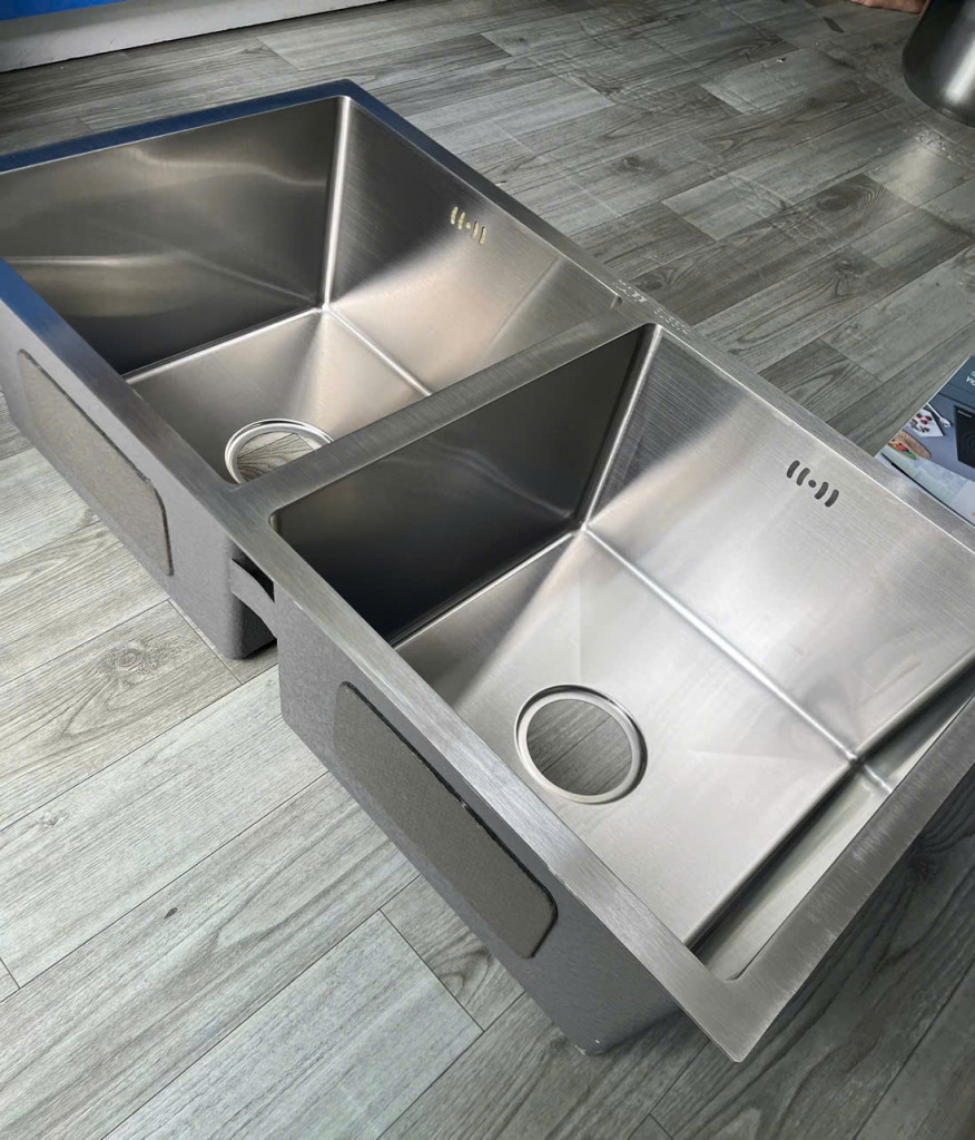 Đóng gói: 1 bộ PE Foam (kèm siphon, bộ xả, hộp dao, phụ kiện thớt)