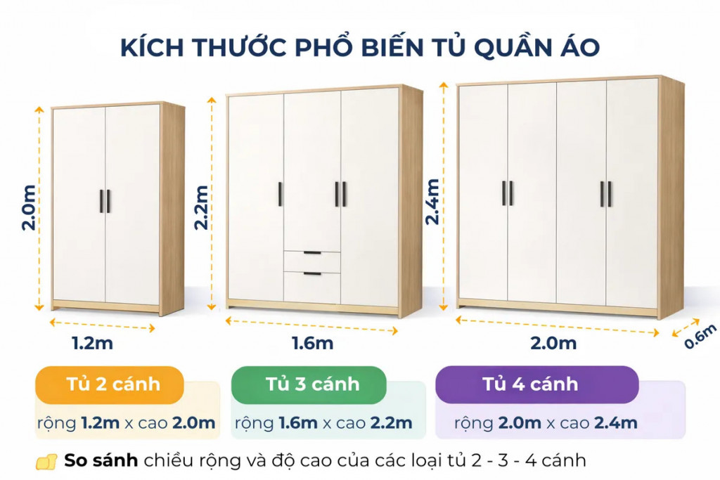 ✔ Kiểu tủ: cánh mở, cánh lùa, tủ kịch trần