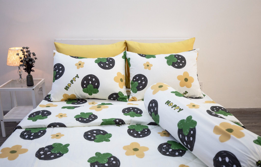 - Họa tiết dễ thương, màu pastel dịu mắt – tạo không gian ngủ êm ái.