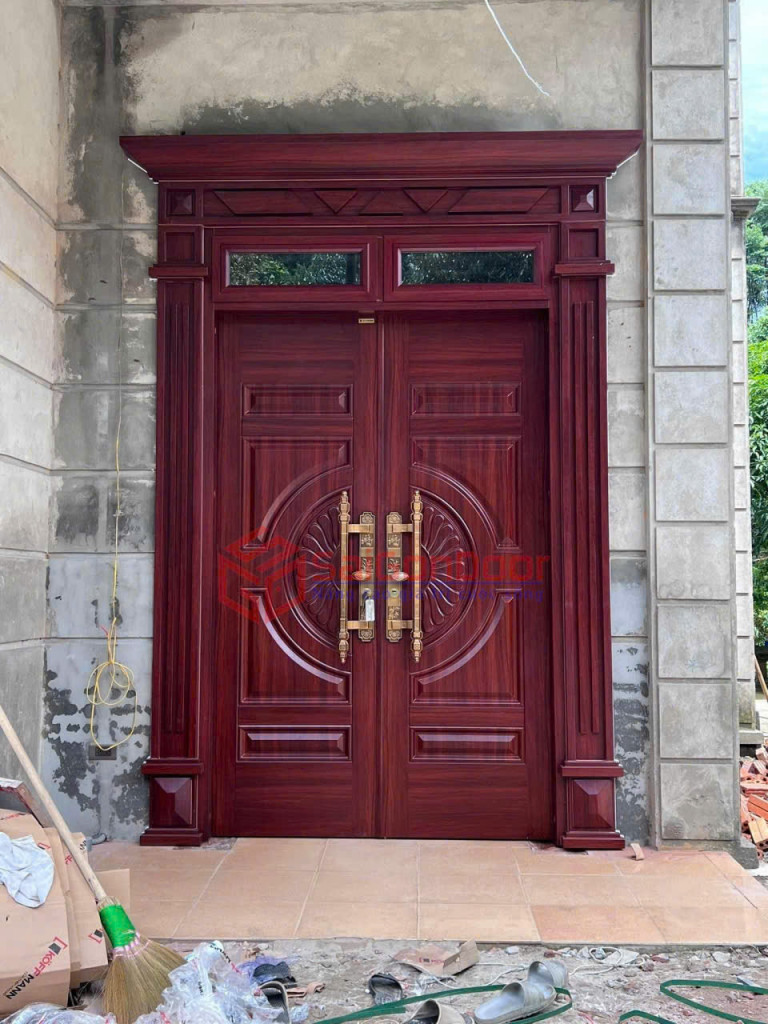 👉Cửa thép vân gỗ 2 cánh kết hợp độ bền của thép và vẻ đẹp vân gỗ tự nhiên, giúp không gian vừa an toàn vừa thẩm mỹ. Thiết kế 2 cánh tạo lối đi rộng rãi, cân đối, phù hợp cho nhà phố, mặt tiền, phòng khách.