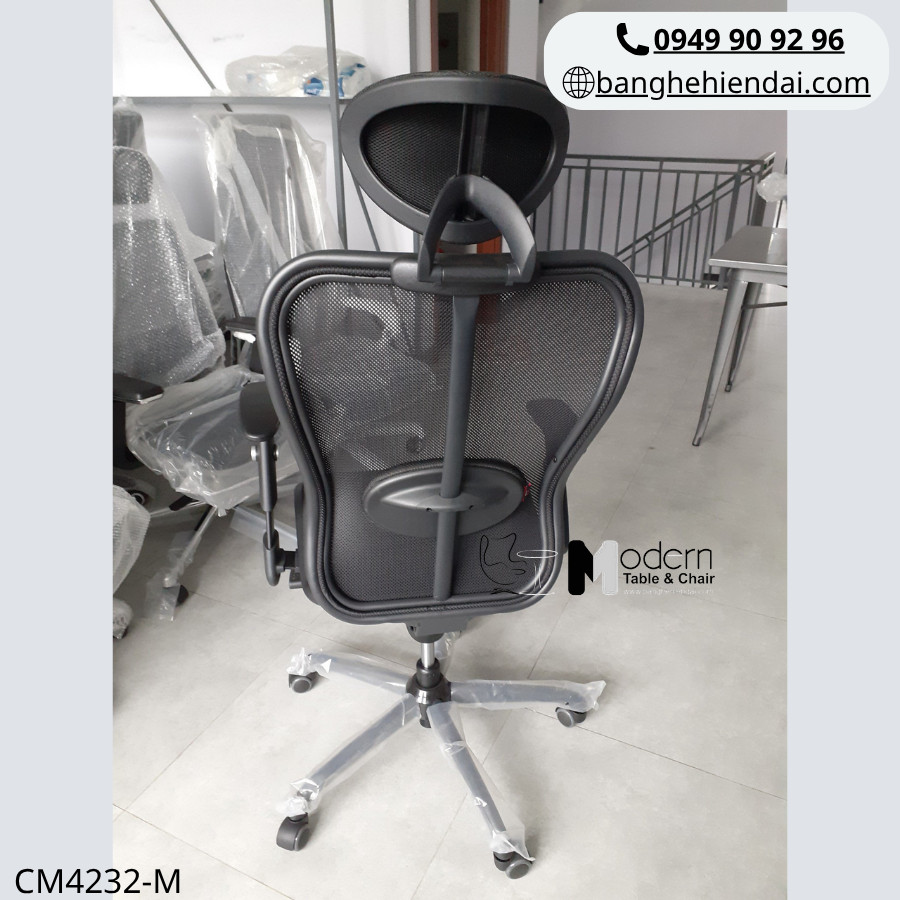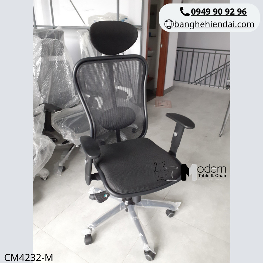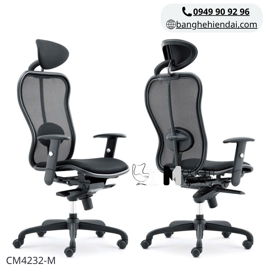 Mẫu CM4232-M mang phong cách tinh tế với thiết kế lưới + nệm vải, phù hợp cho các vị trí quản lý, giám đốc hoặc góc làm việc cao cấp.