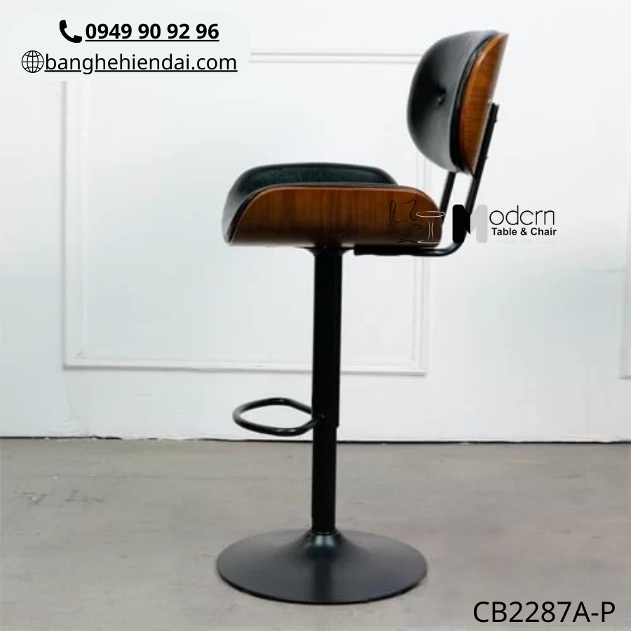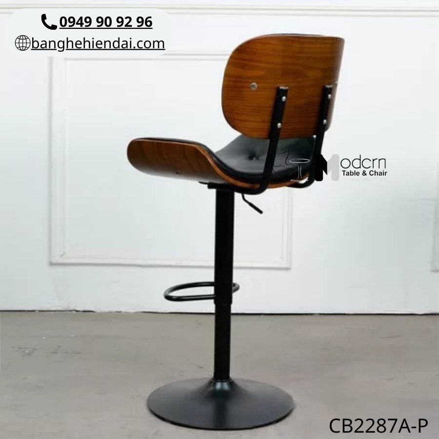 ✨ GHẾ QUẦY BAR CHÂN ĐEN LƯNG ỐP GỖ CB2287A-P ✨
