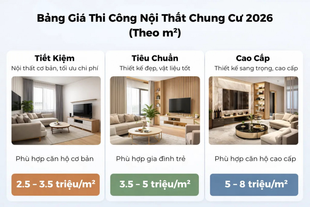 📐💰 GIÁ THI CÔNG NỘI THẤT TRỌN GÓI 2026 – TÍNH THEO m² BAO NHIÊU?